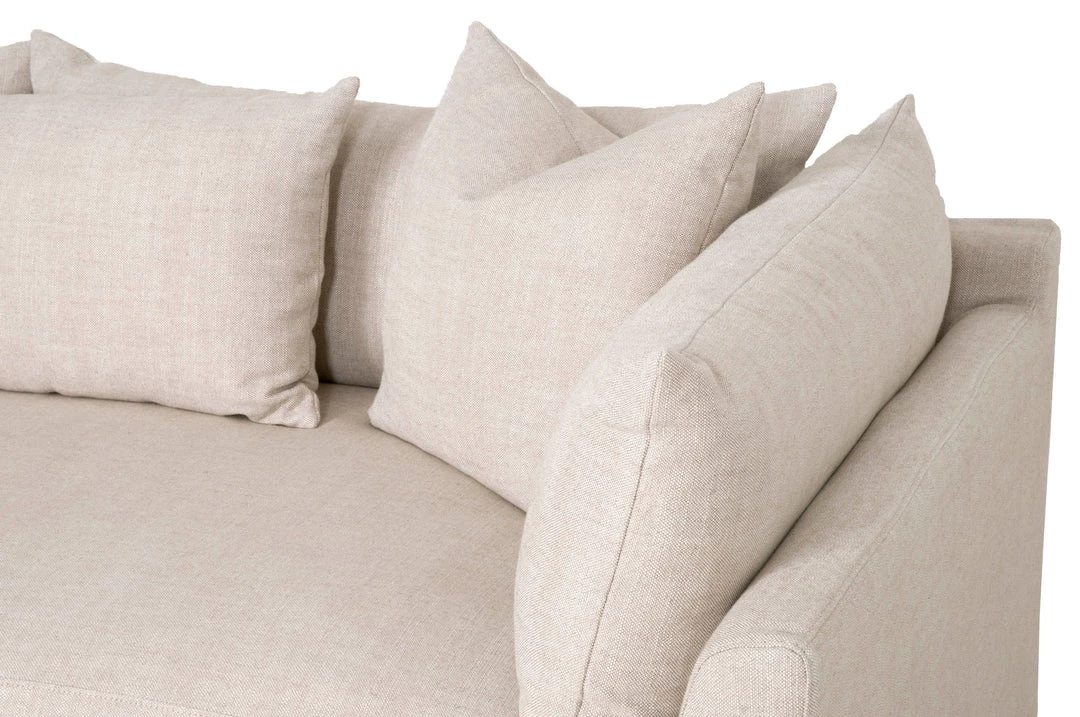 Materials: Solid Birch Wood, MDF, Plywood, 55% Linen/45% Polyester Fabric, Foam, Down Blend, Down Feather