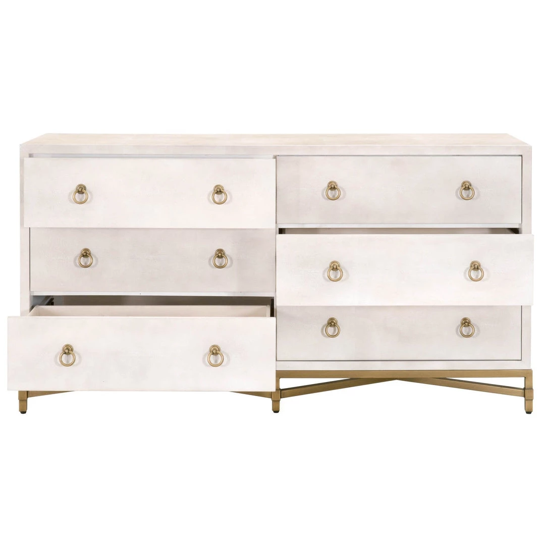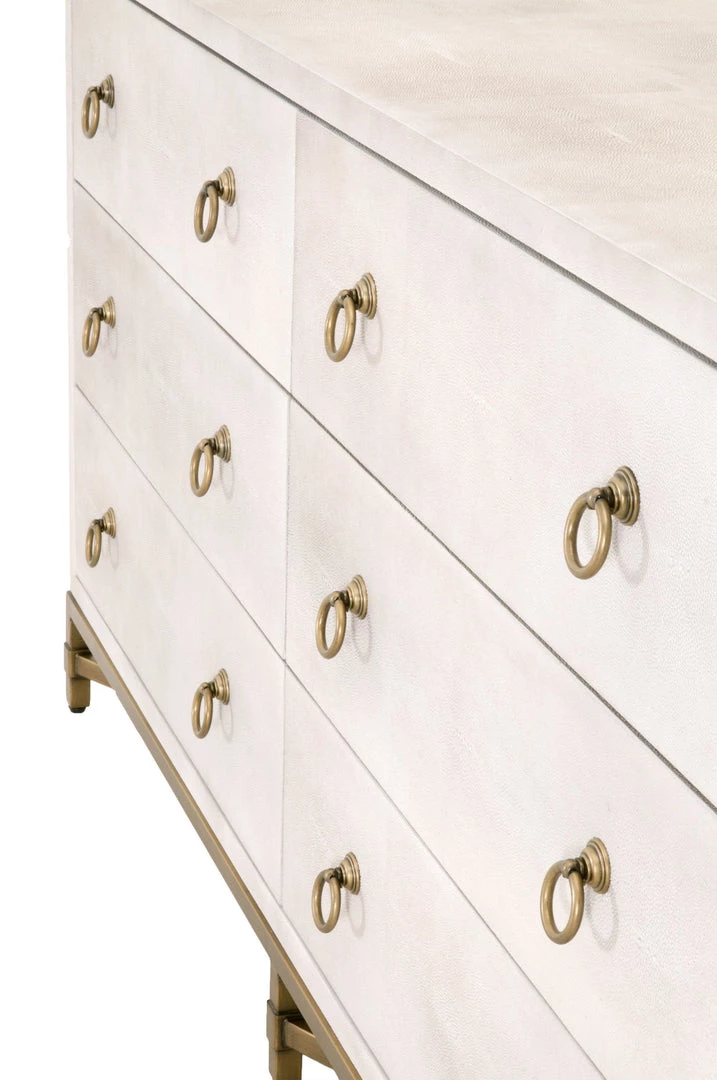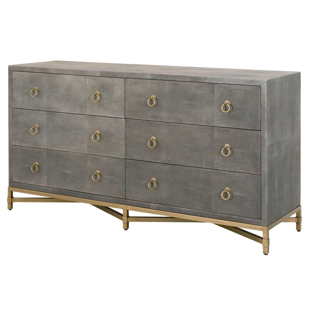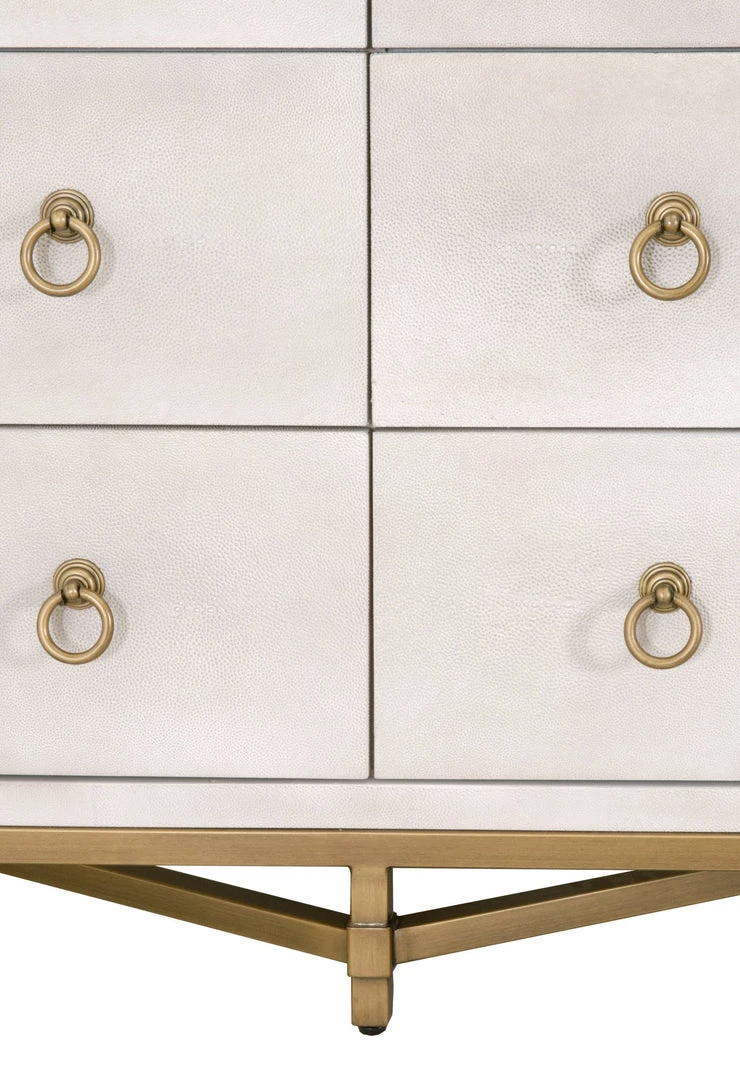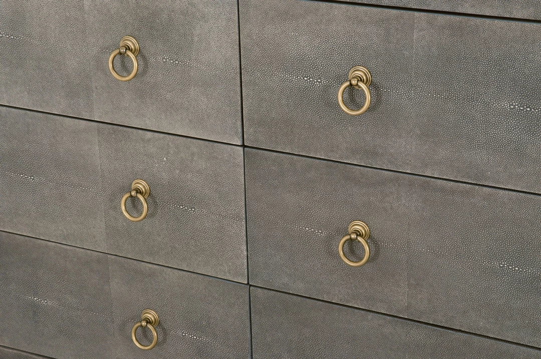 Materials:Â Faux Shagreen Resin, Solid Acacia Wood, Plywood, MDF, Steel POÂ Hardware: Brushed Gold Ring Pulls