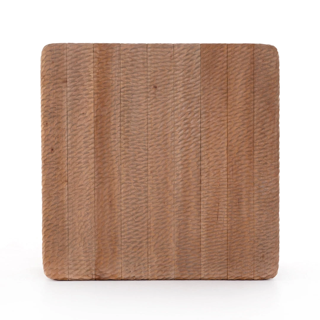 Inspired by rare 18th-century sake flasks, solid mahogany is thoughtfully hand carved, creating a textural, dimple-like look with warm, sun-bleached undertones. Unique variations to be expected, and speak to this piece’s handmade nature.