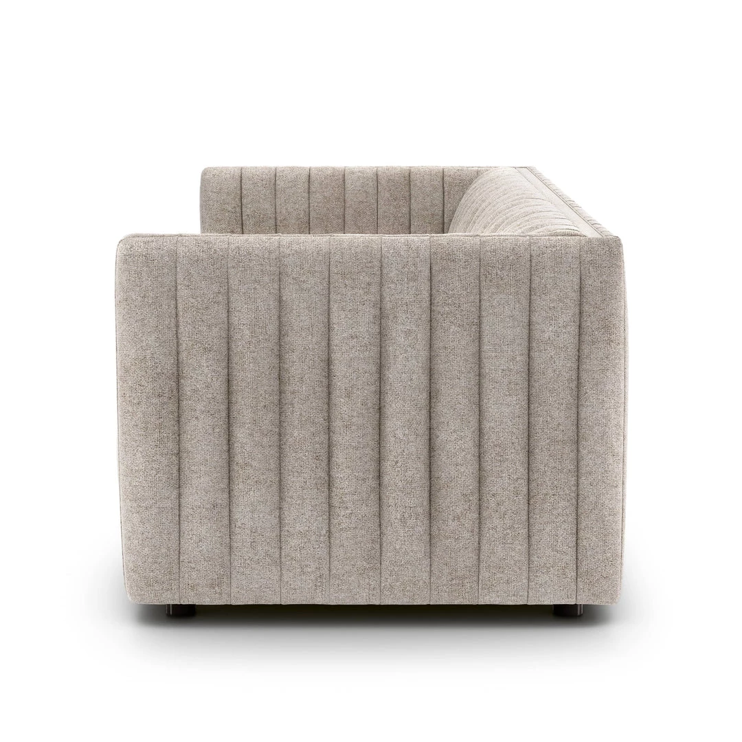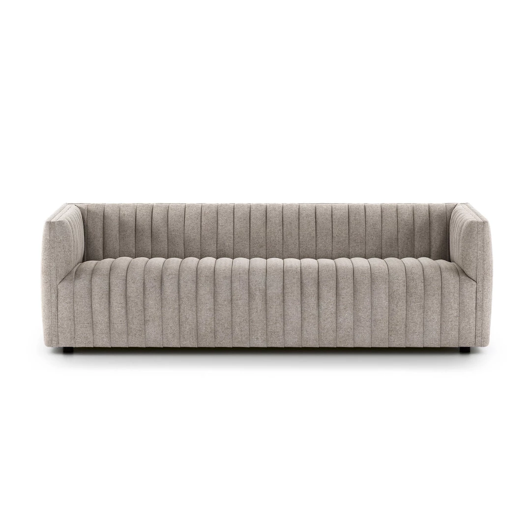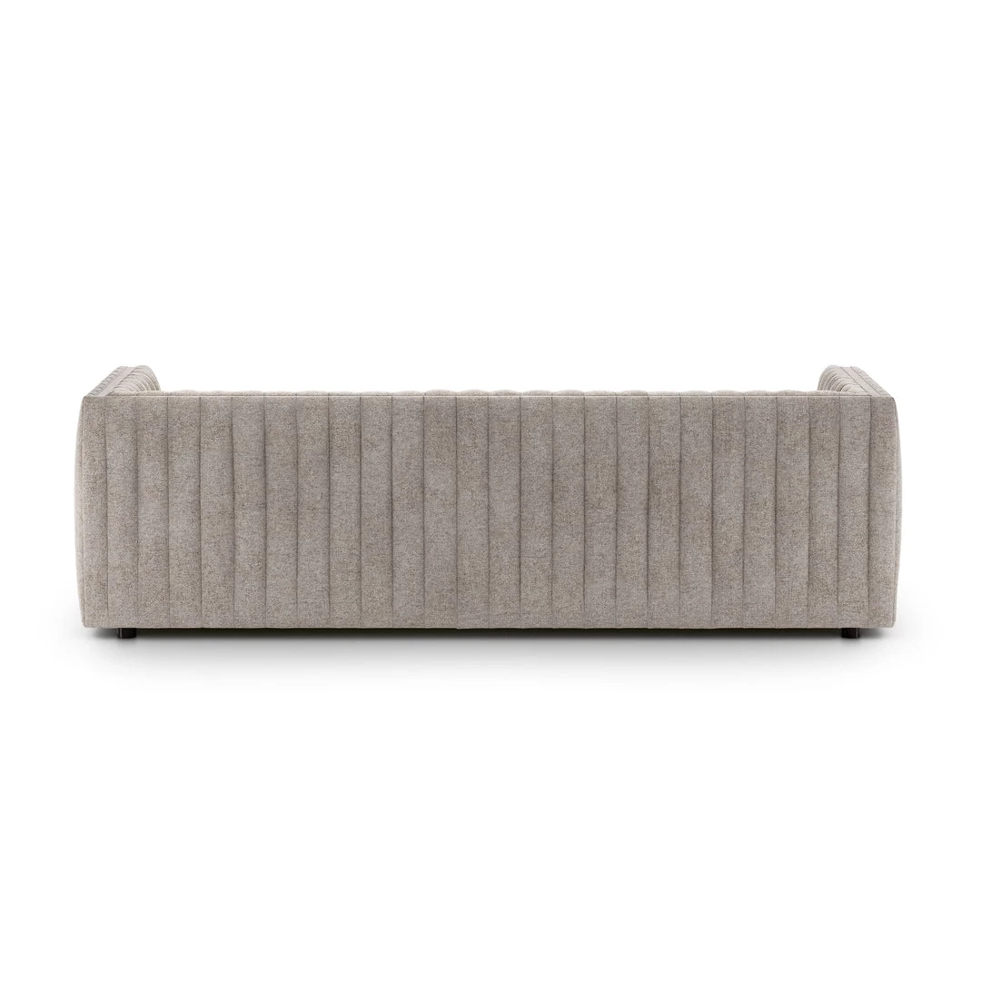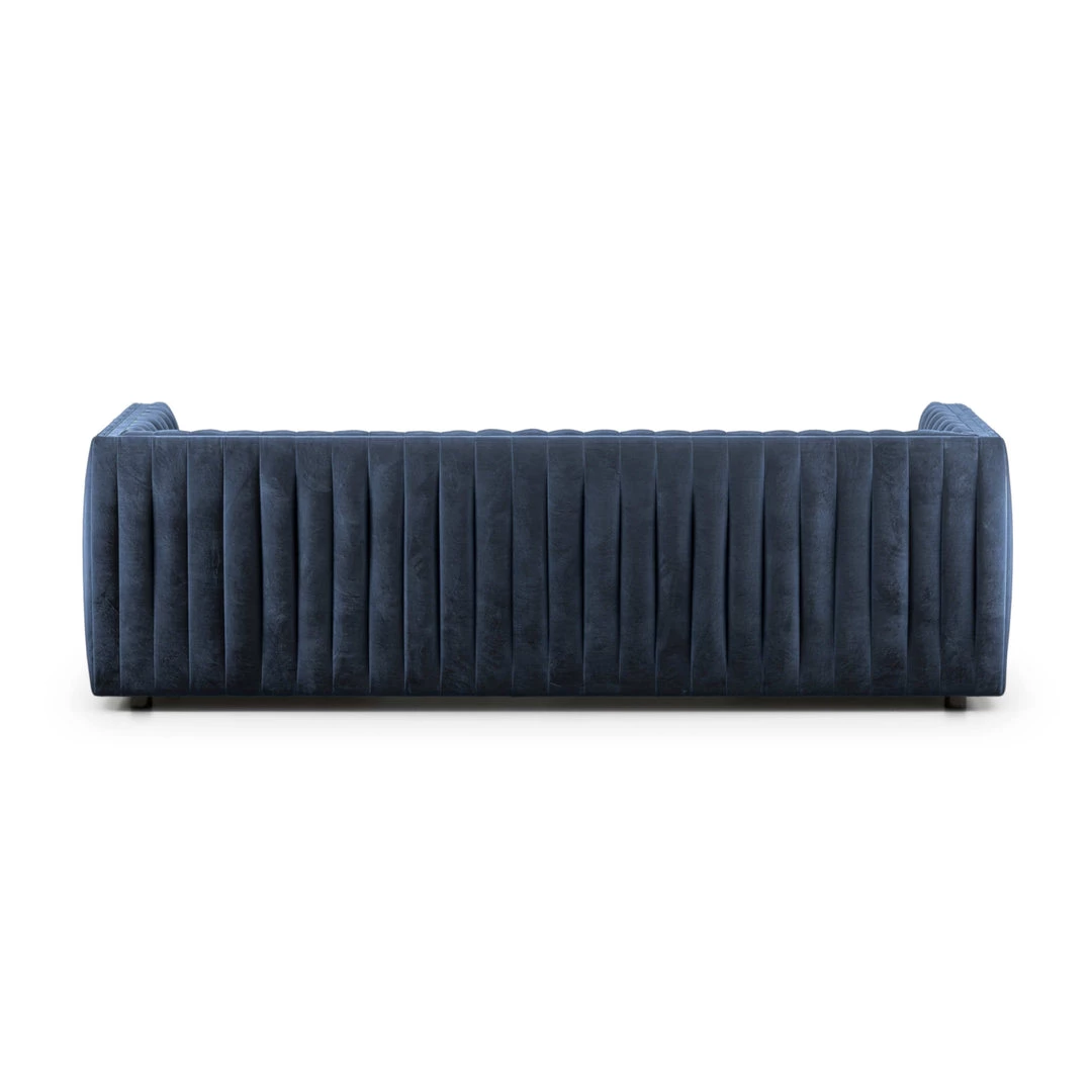 Velvety poly-blend in a rich auburn hue takes on dramatic channeling for trend-forward texture on this sumptuous seating.