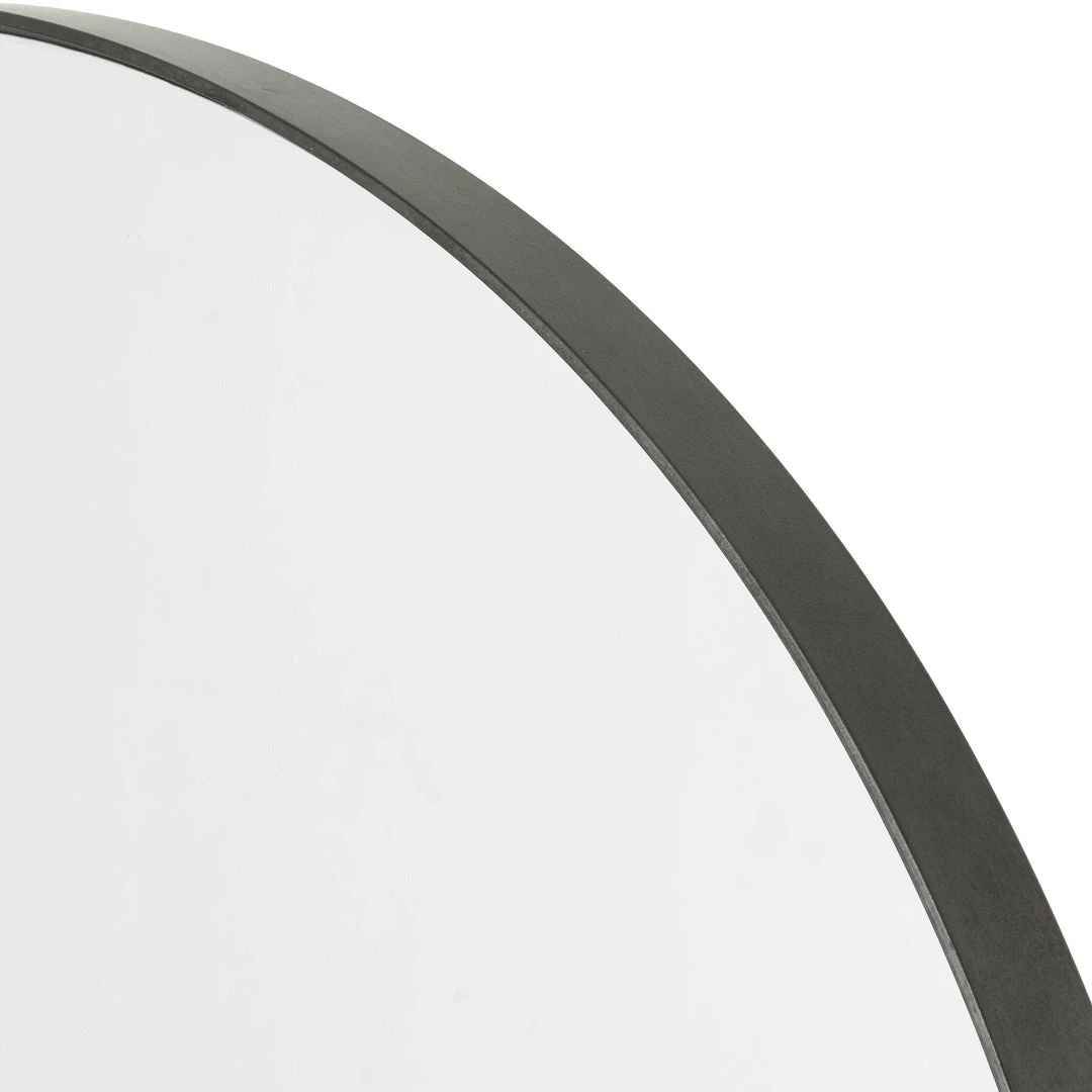 Rounded iron framing takes on a classic black tone to let clean, mirrored glass speak for itself.