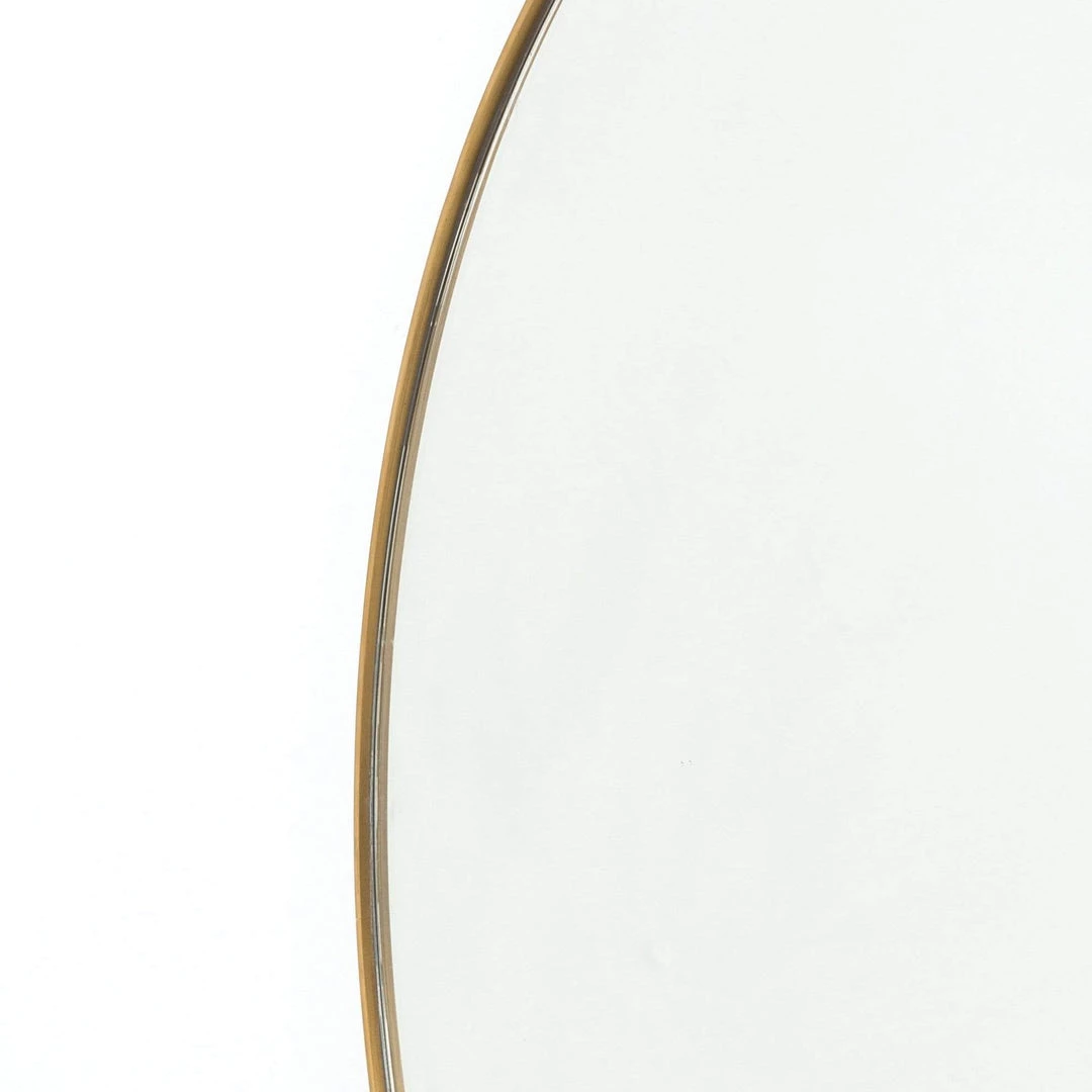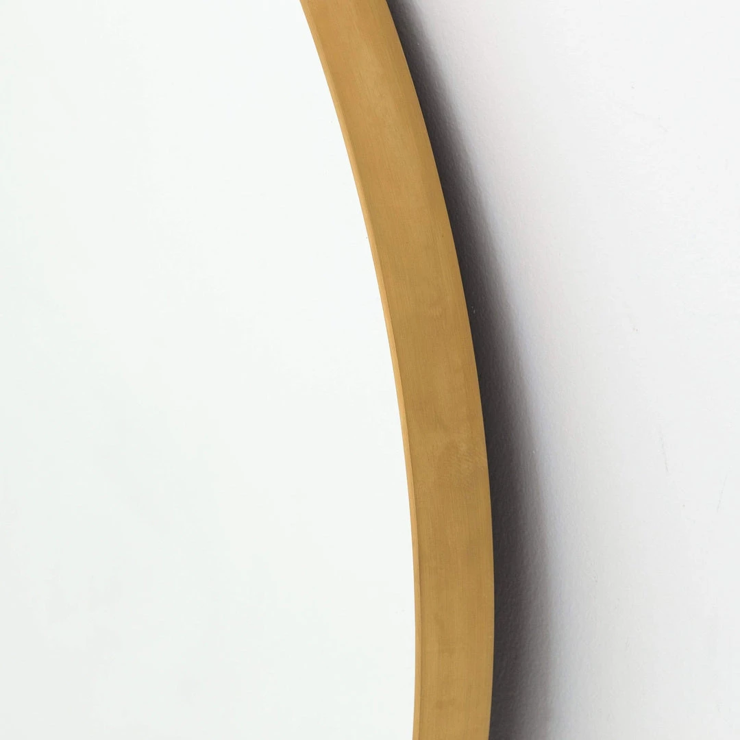 Grace on the edge of modernity. Round stainless steel takes on a polished brass tone to let clean, mirrored glass speak for itself.