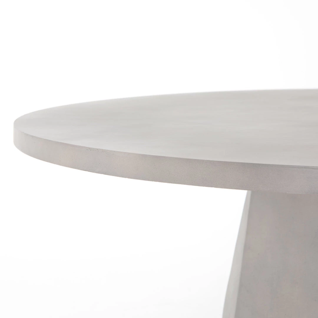 Grey-finished concrete forms a faceted base for impact from every angle. A roomy, rounded top is ready to welcome guests indoors or out. Cover or store inside during inclement weather and when not in use.