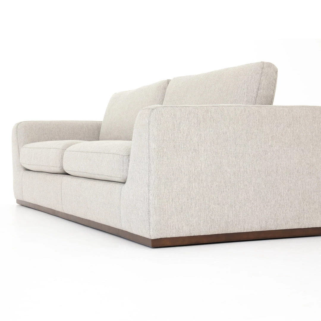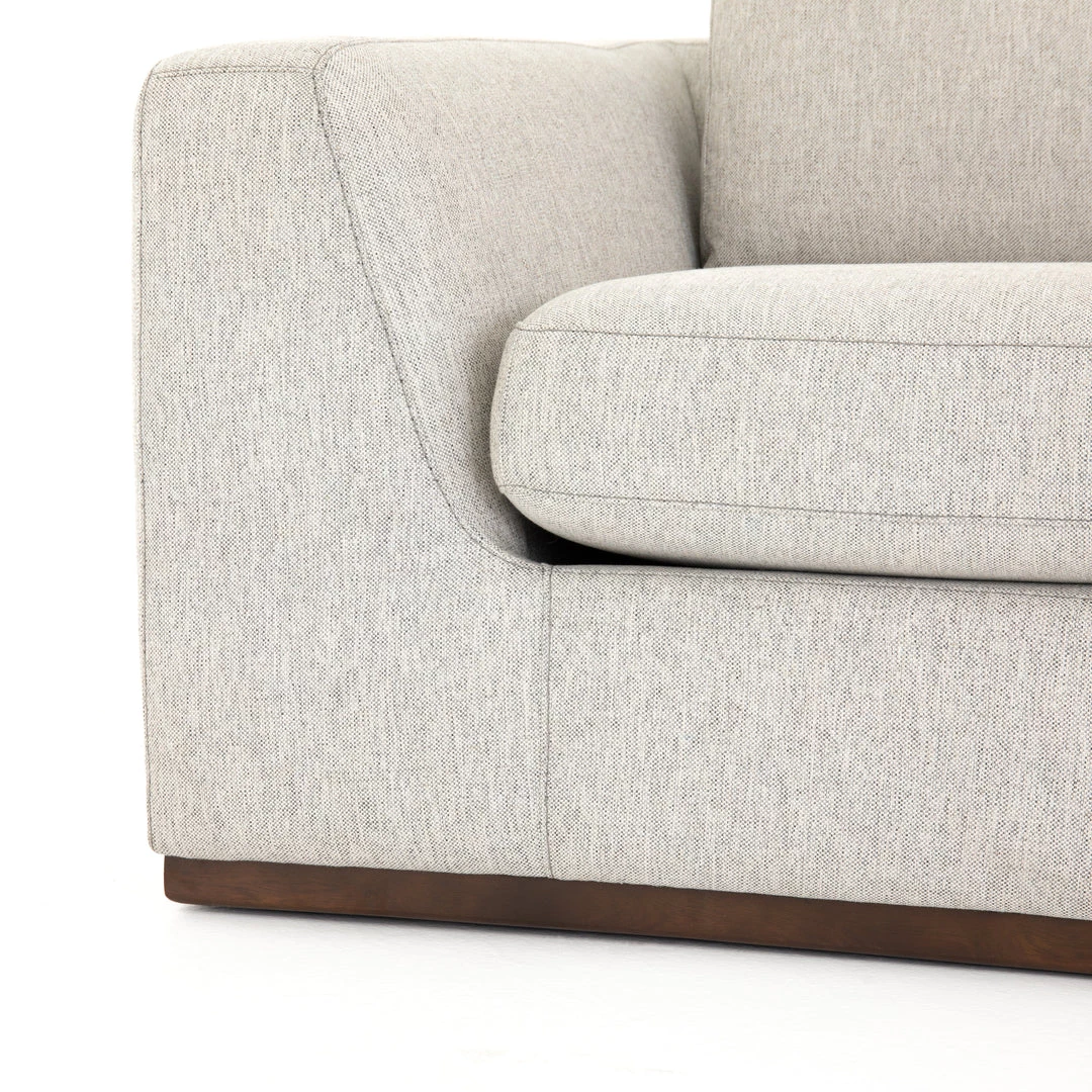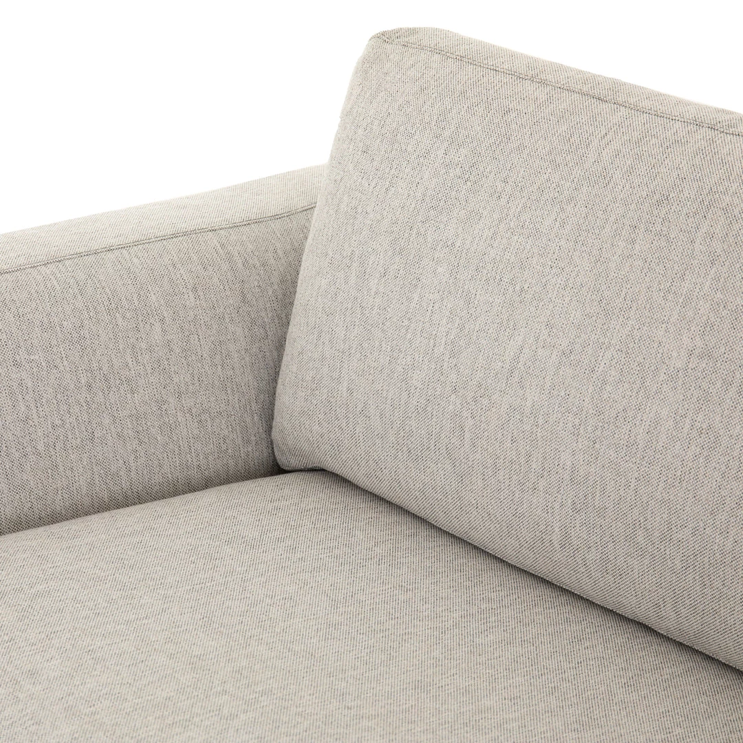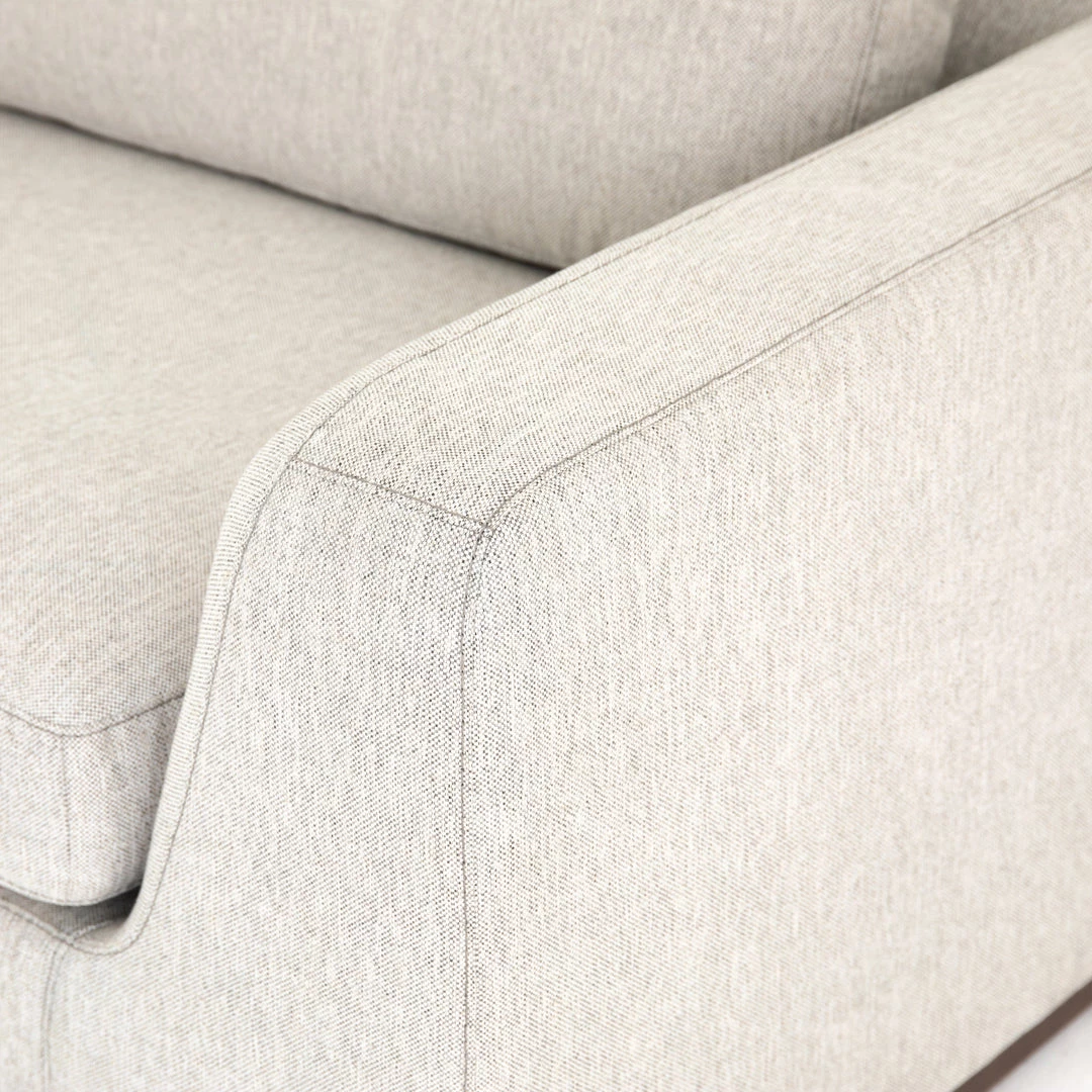 Simply styled for everyday lounging. A textural poly/linen blend covering adopts a neutral off-white hue, while subtly flared sides for shapely effect.