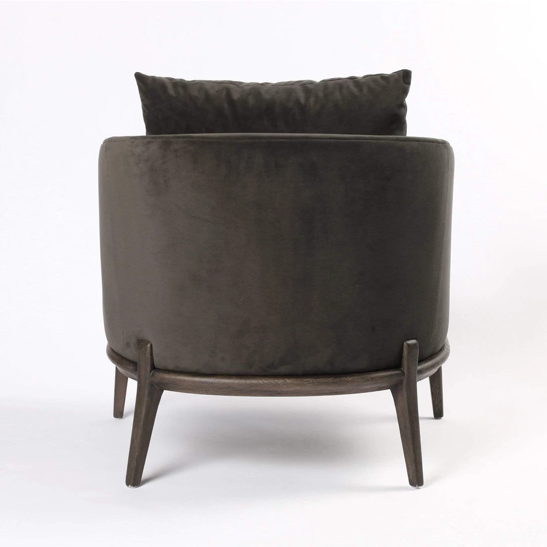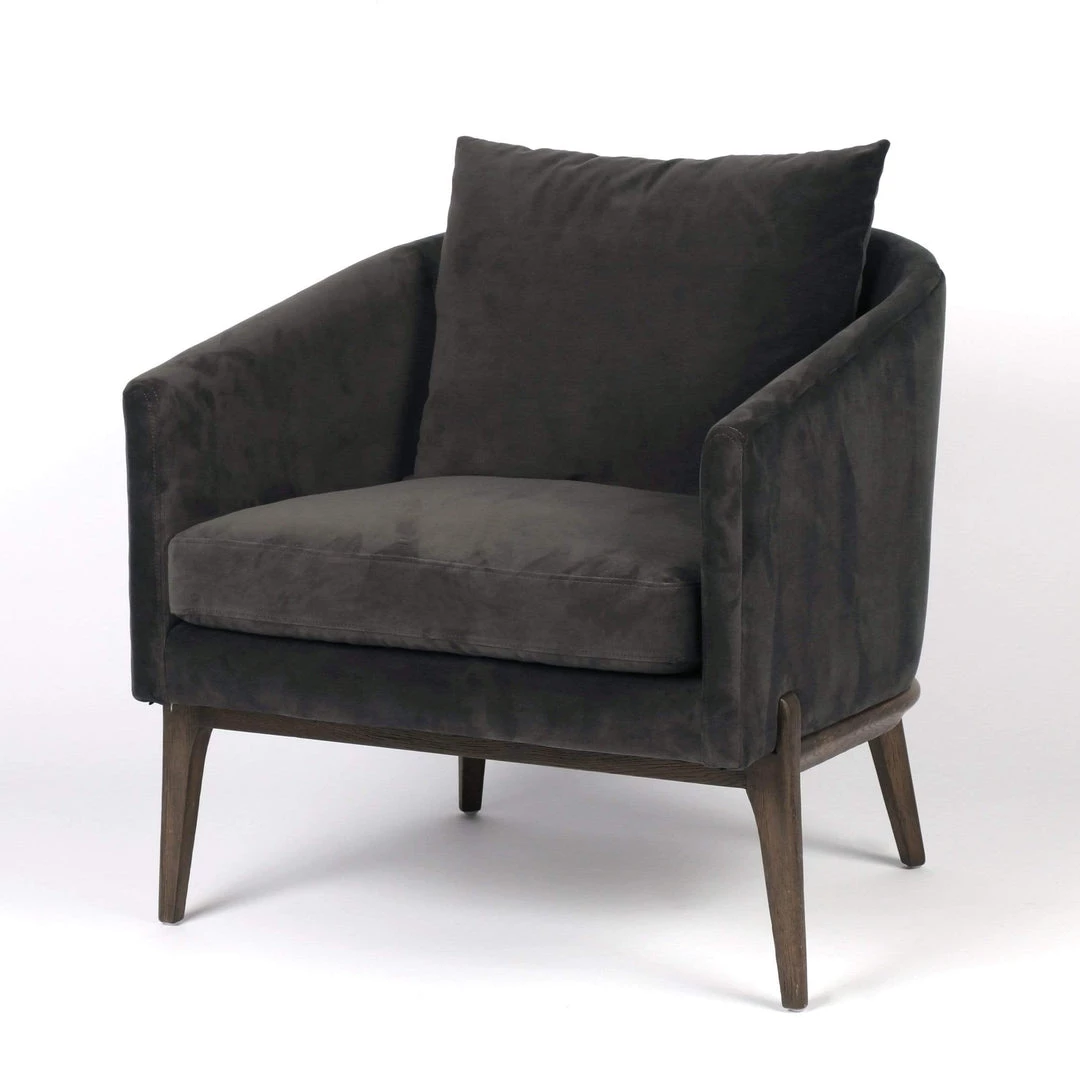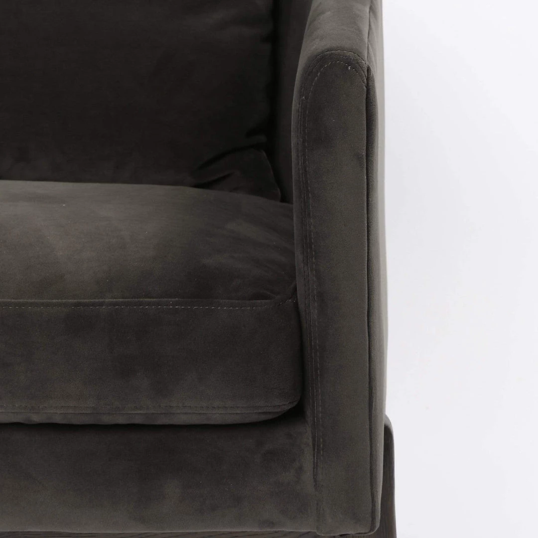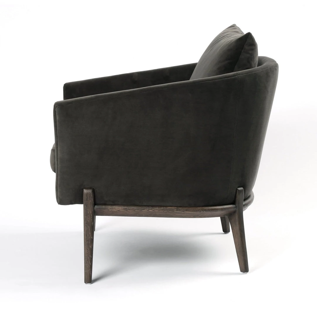 A tailored look inspired by modern menswear. Slim, cradled framing of brushed oak supports velvet-like seating with a single pillow for added comfort.