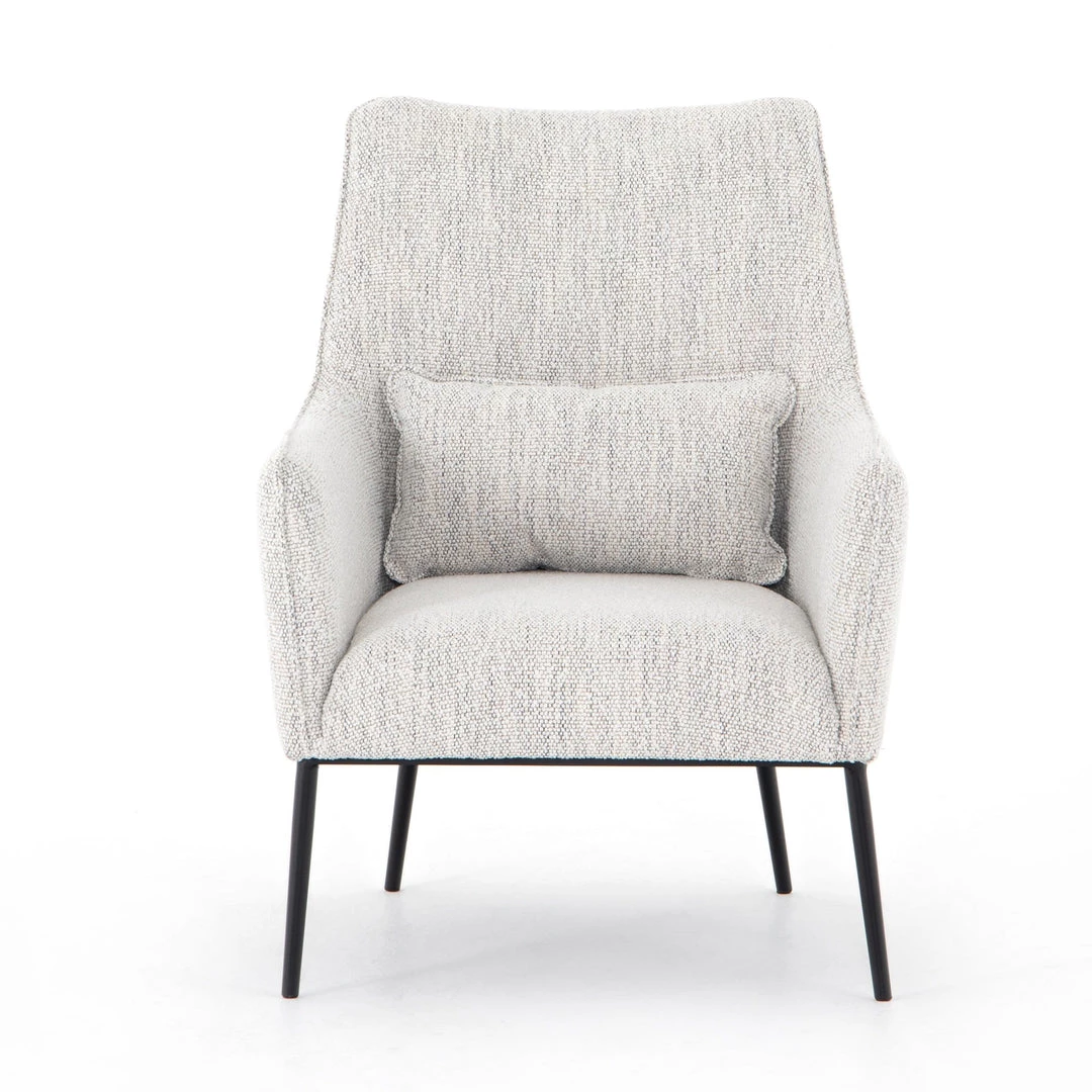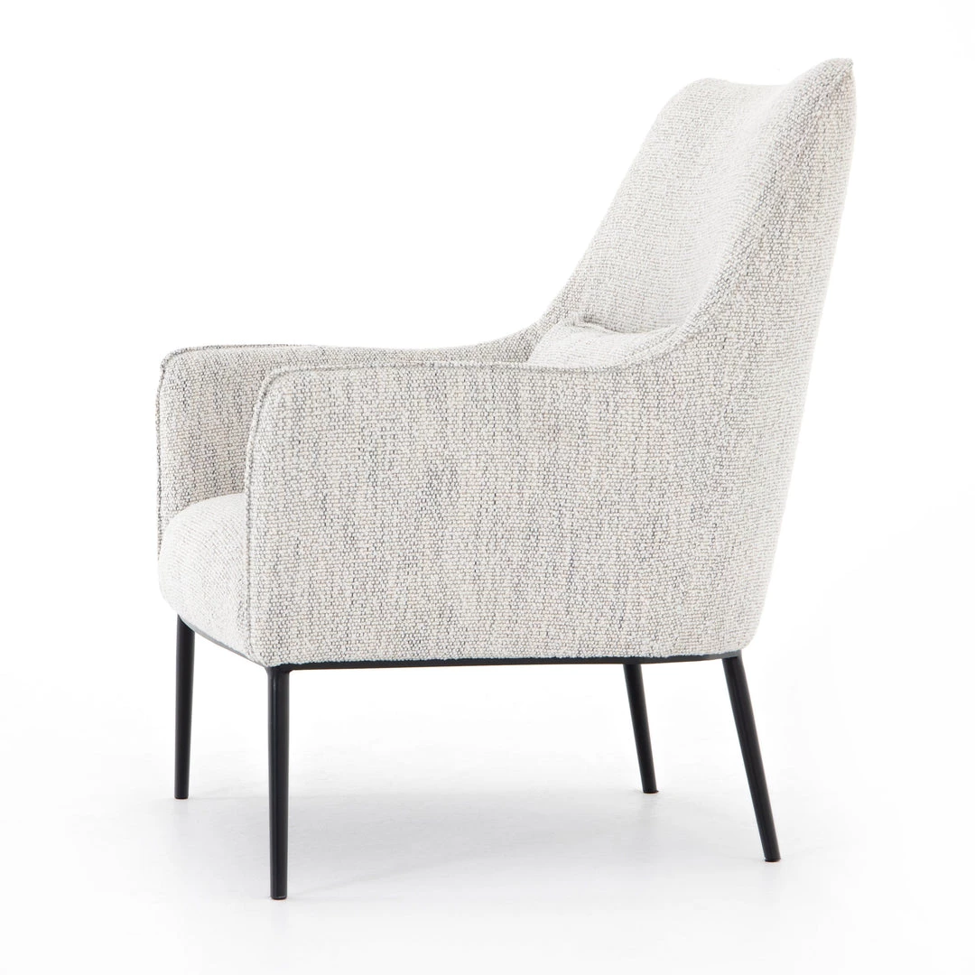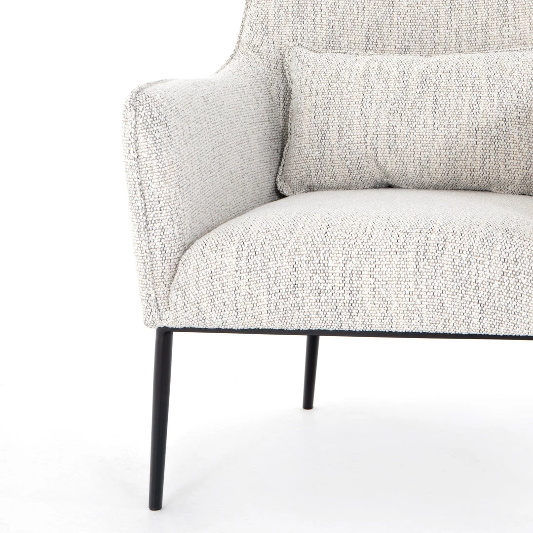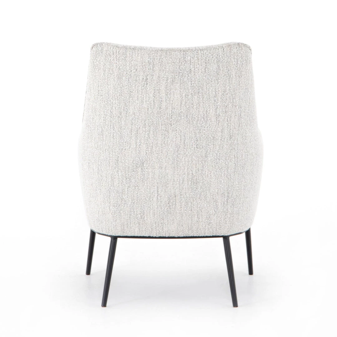 Tailored for comfort. A modern take on the traditional wing chair, chunky, cotton-like upholstery features perimeter piping for a crisp, clean look, while slim, black-finished iron legs keep things looking airy and light.