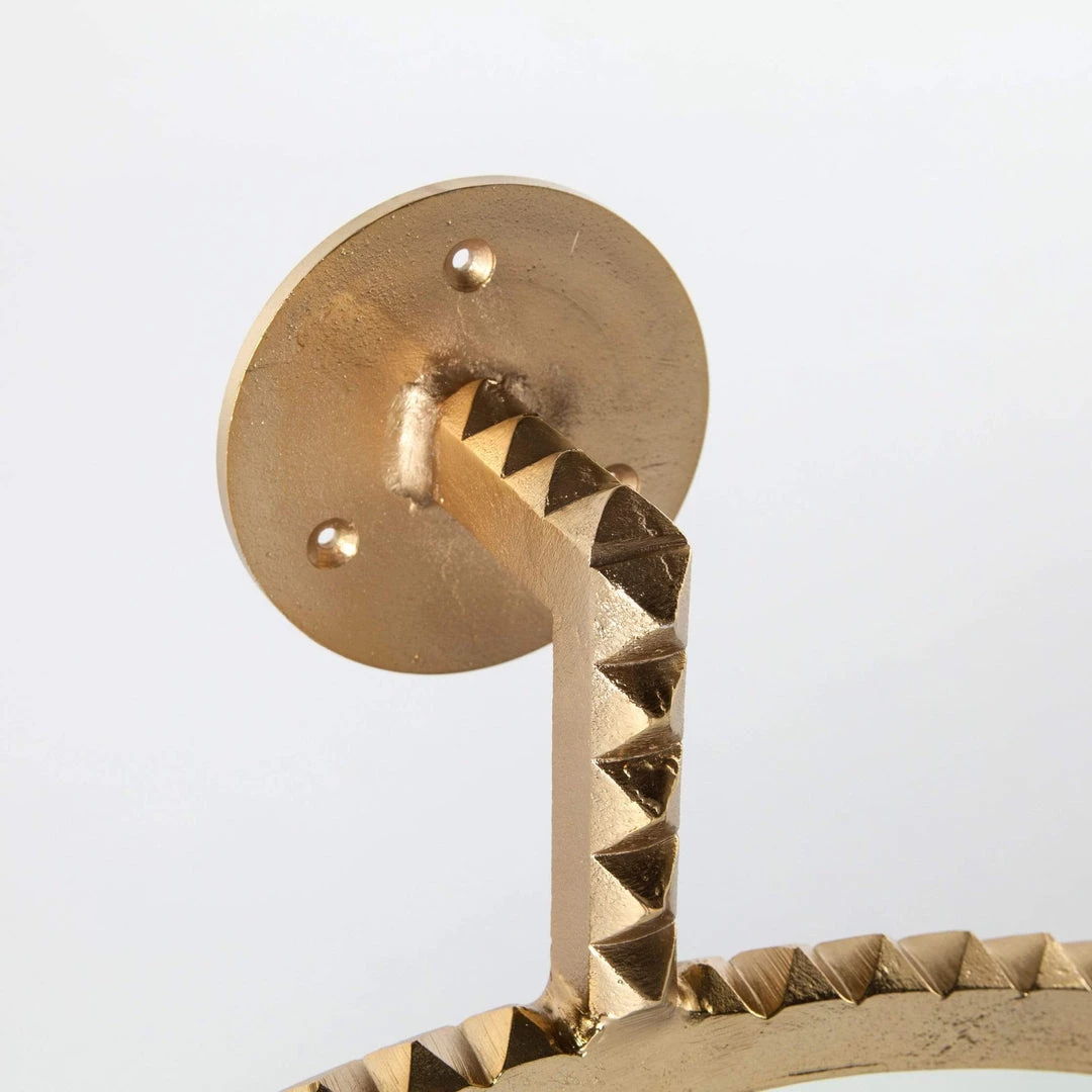 Cast aluminum feels “carved” and is finished in aged gold to artfully frame a round mirror. Perfectly sized for bathroom or living room spaces.