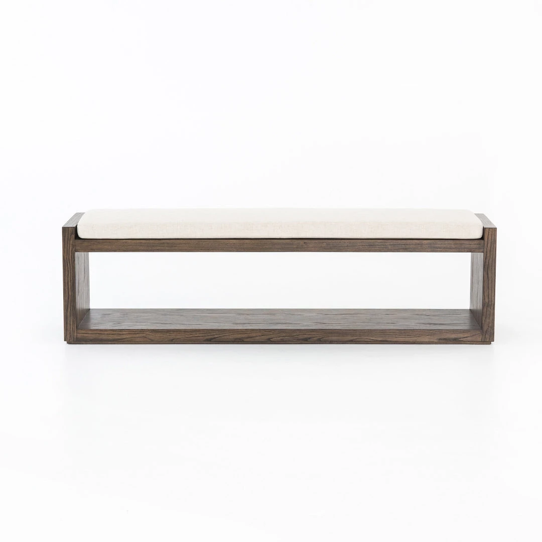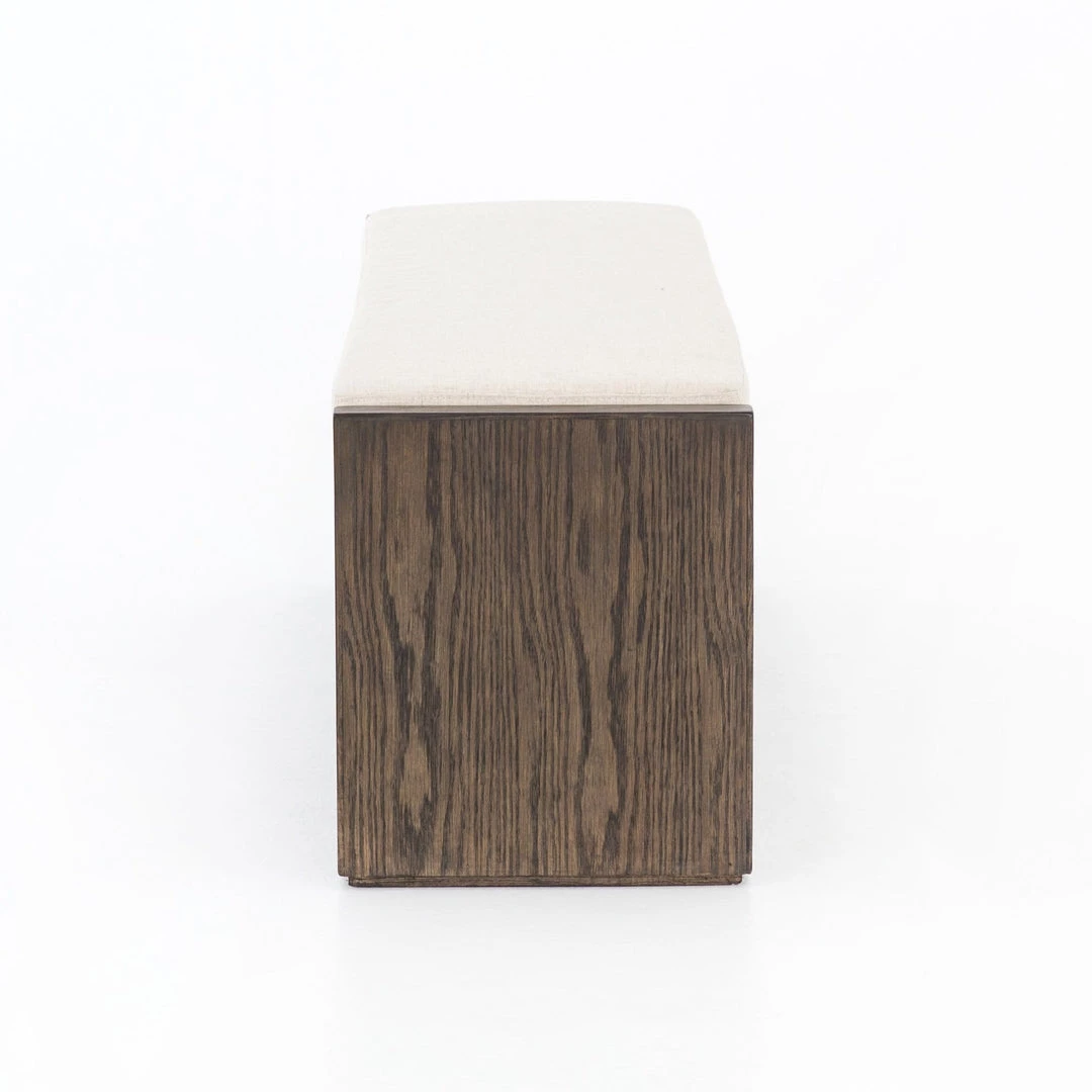 Mixed materials and open styling allows for versatile placement options. Warm cedar-finished nettlewood forms clean lines to support performance-grade seating in a neutral flax. As perfect for dining as in entryway.