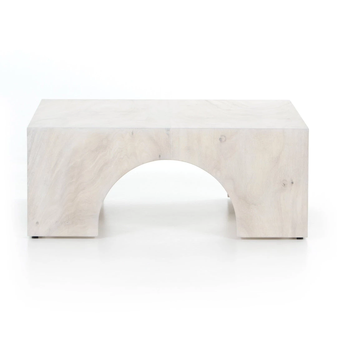 Clean and simple, with great impact. Made from beautiful bleached Guanacaste, shapely arches and block corners speak to the architectural inspiration behind this eye-catching coffee table.