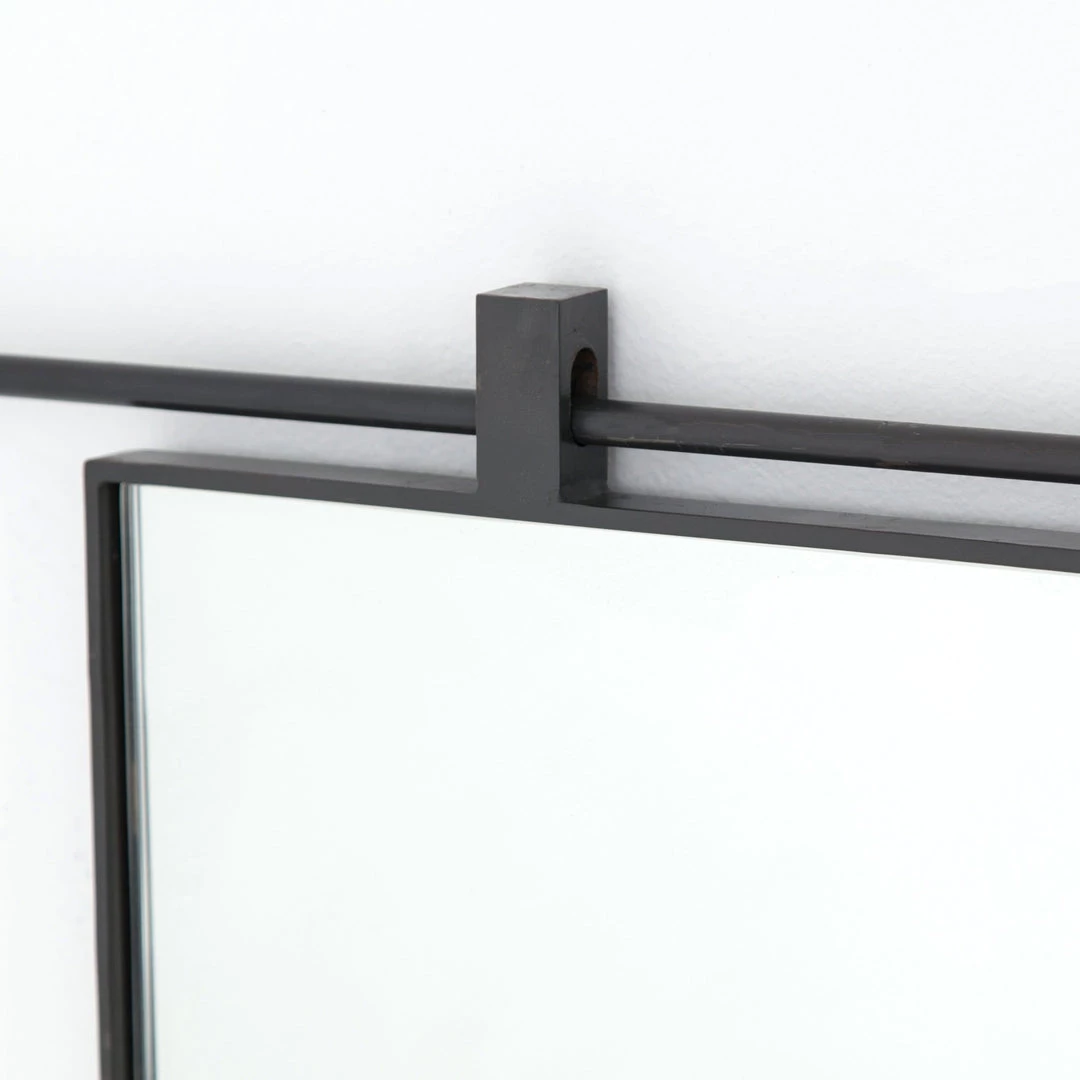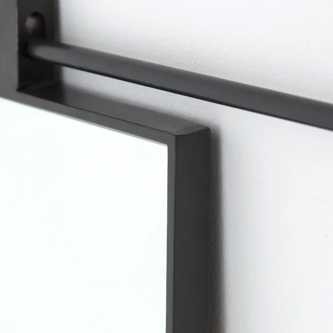 A slim antiqued iron bar suspends a simple square for a streamlined look with modern-minimalist allure. Posterior cleat for secure hanging.