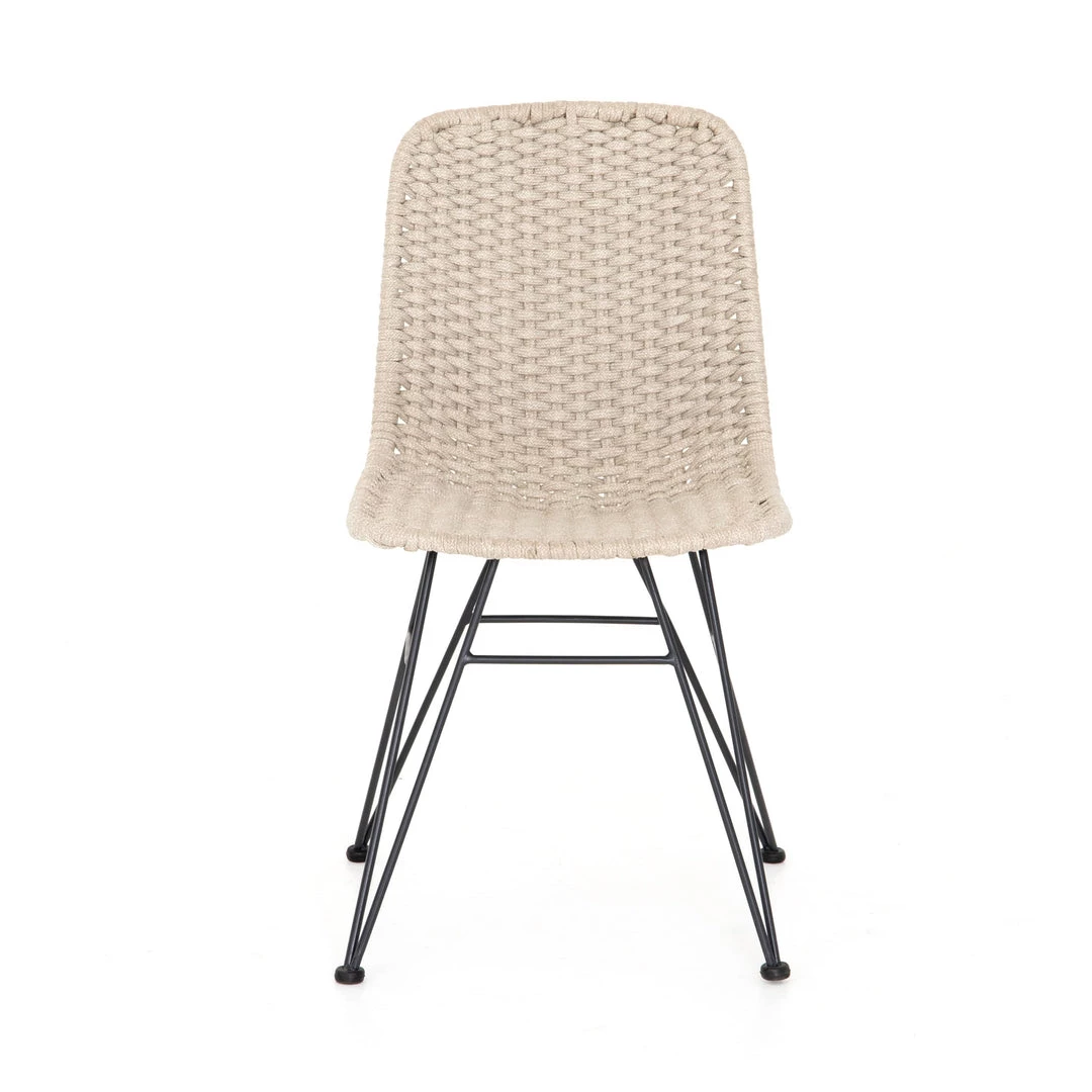 Bring a touch of texture outdoors. Neutral armless seating weaves, with black hairpin legs for a modern touch. Cover or store indoors during inclement weather and when not in use.