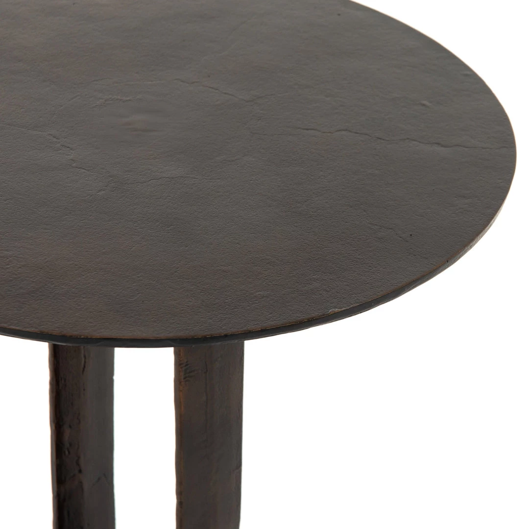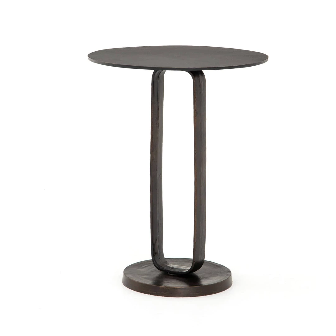 Precise curves with modern presence. Rounded base and tabletop of aged bronze-finished aluminum are connected via a shapely ring, for an open look and fun blend of scale and proportion. Safe for outdoor spaces. Cover or store indoors during inclement weather and when not in use.