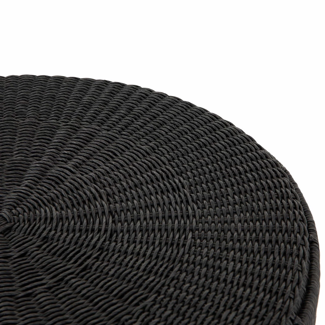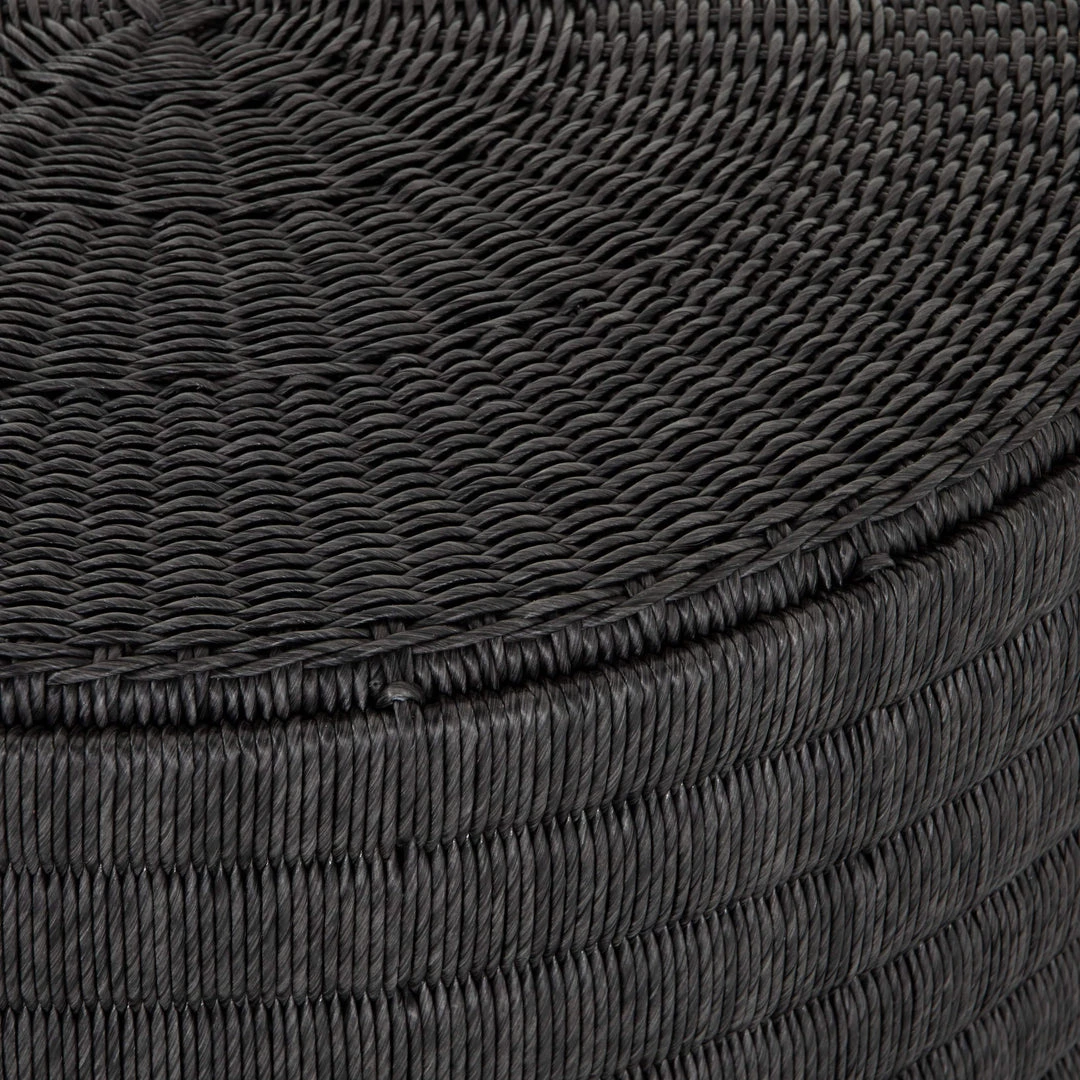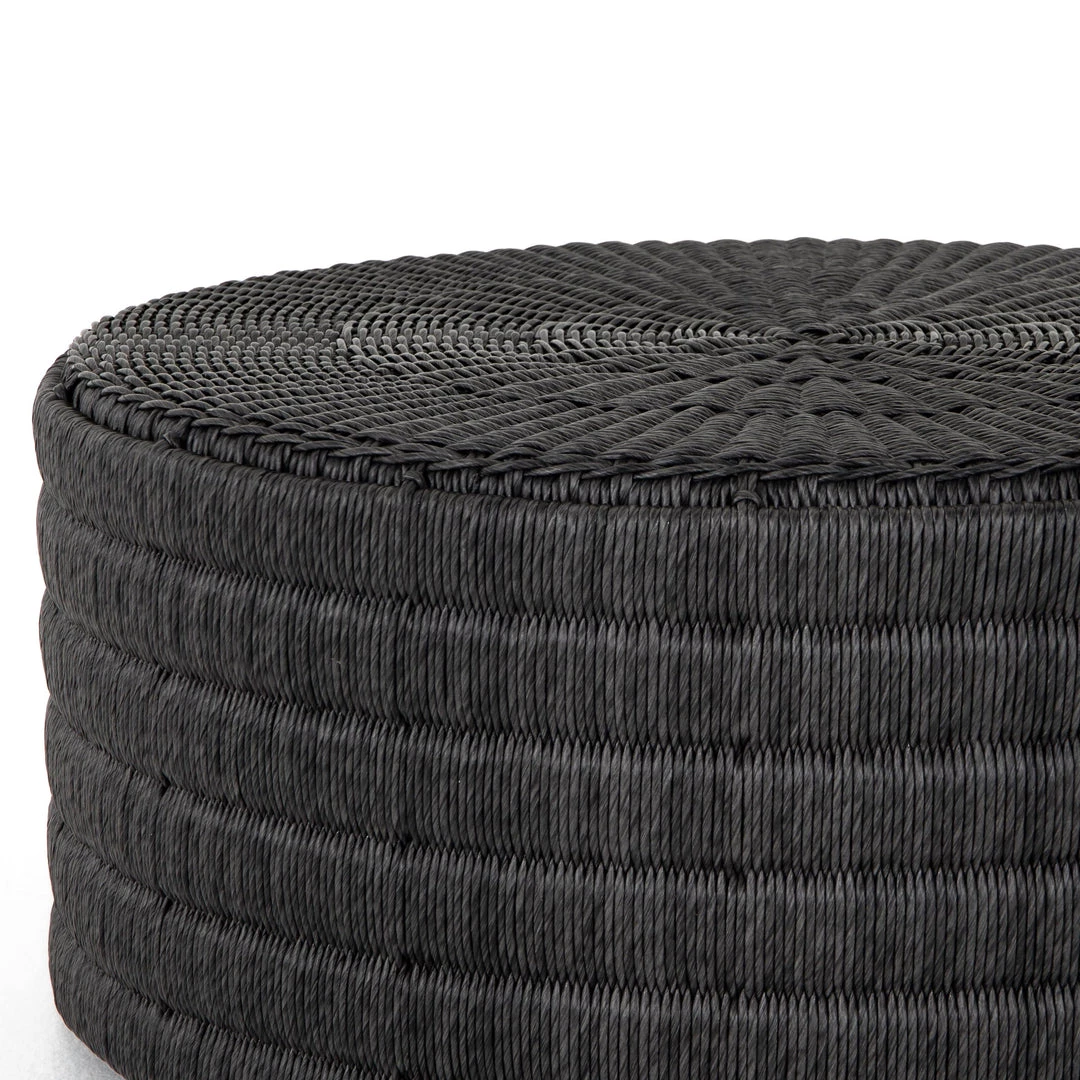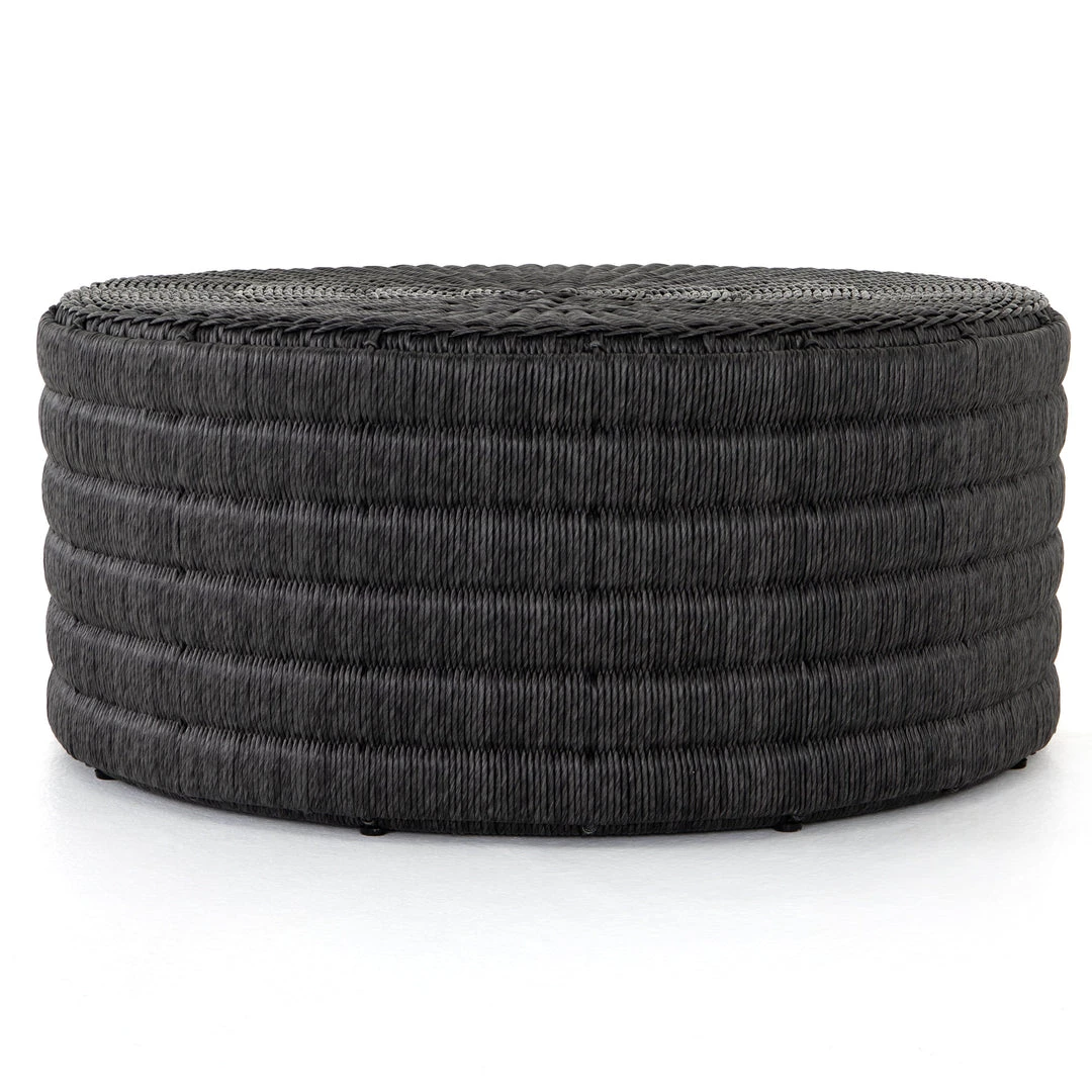Finished in a deep coal, all-weather wicker beautifully rounds to form a texture-driven coffee table, perfect for outdoor entertaining. Cover or store inside during inclement weather and when not in use.