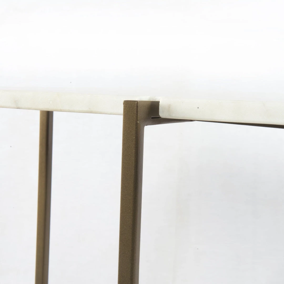 Add a pop of sophistication with a two-tone touch. Slim, antique brass-finished iron forms an X to support tiers of perforated metal and polished white marble for a look of simple grace.