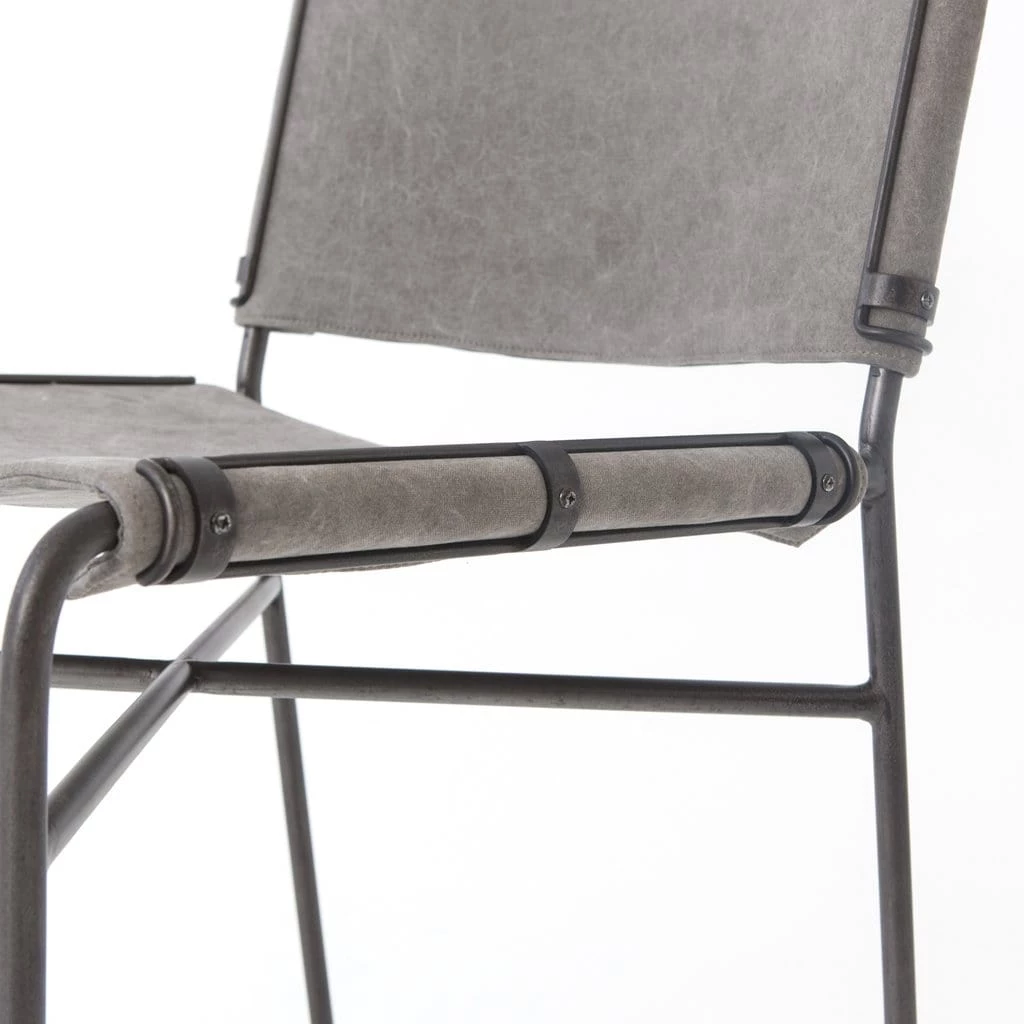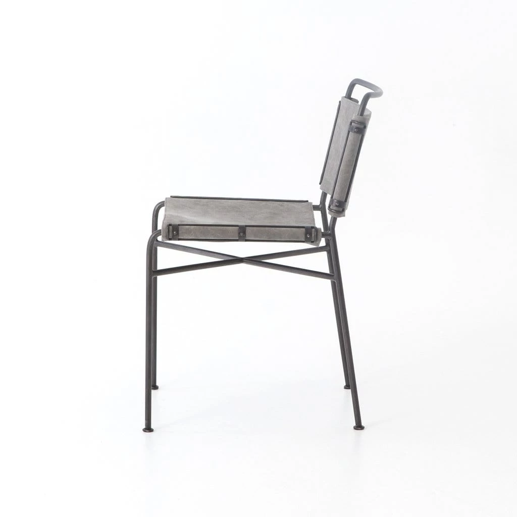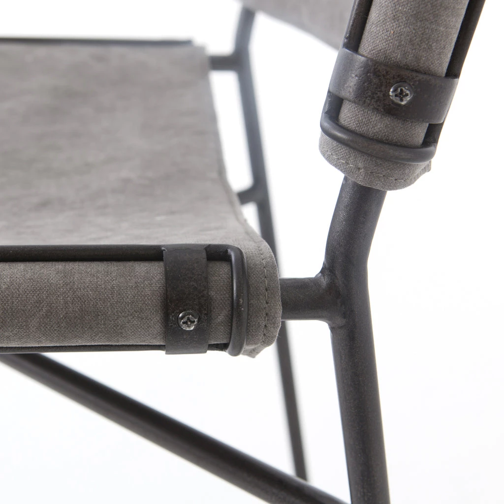 Slim lines and mixed materials combine for ample comfort. Architecturally inspired steel tubing is graced by simply contoured canvas seating.
