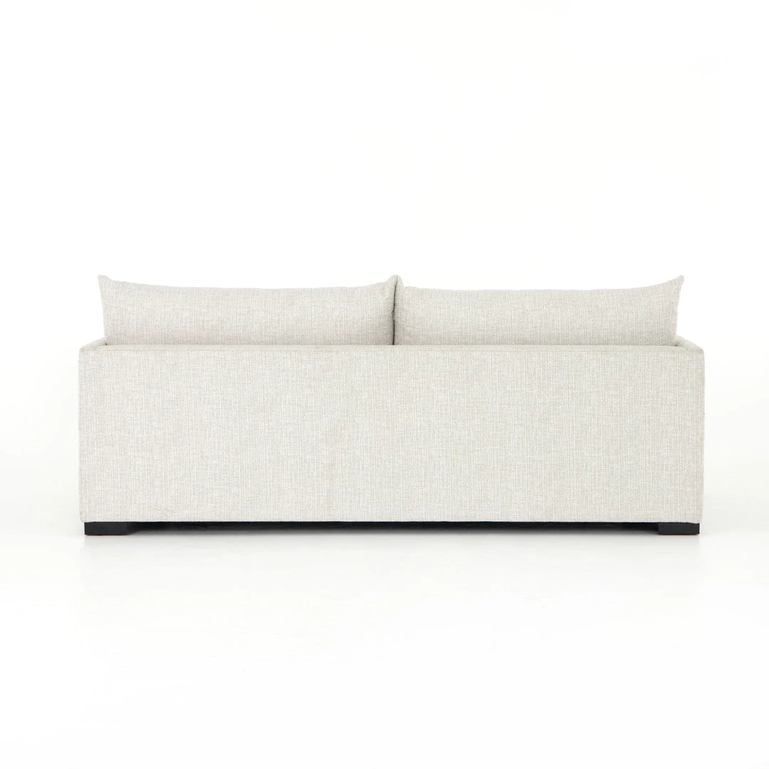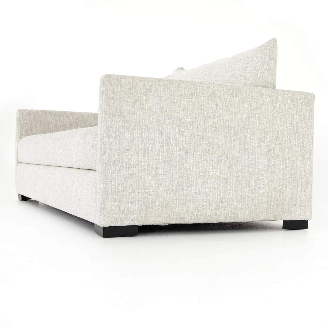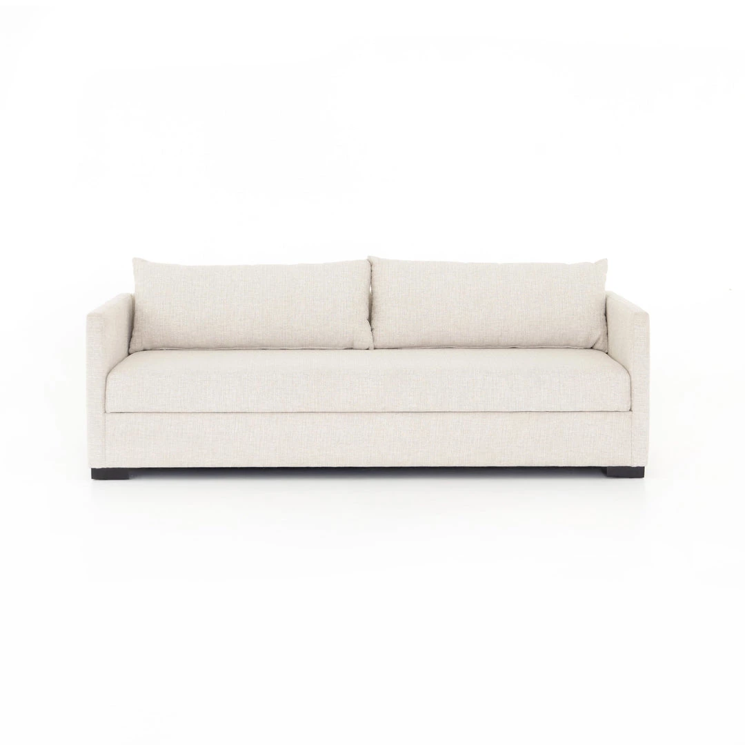 A simple, stylish silhouette redefines the classic sleeper sofa. With knife-edge pillows and neutral performance-grade upholstery, a discreetly concealed sleeper mechanism allows for one-step pullout with ultimate ease. Unfolded, a comfortable Queen-size bed is ready to welcome overnight guests or make family movie nights a little comfier.