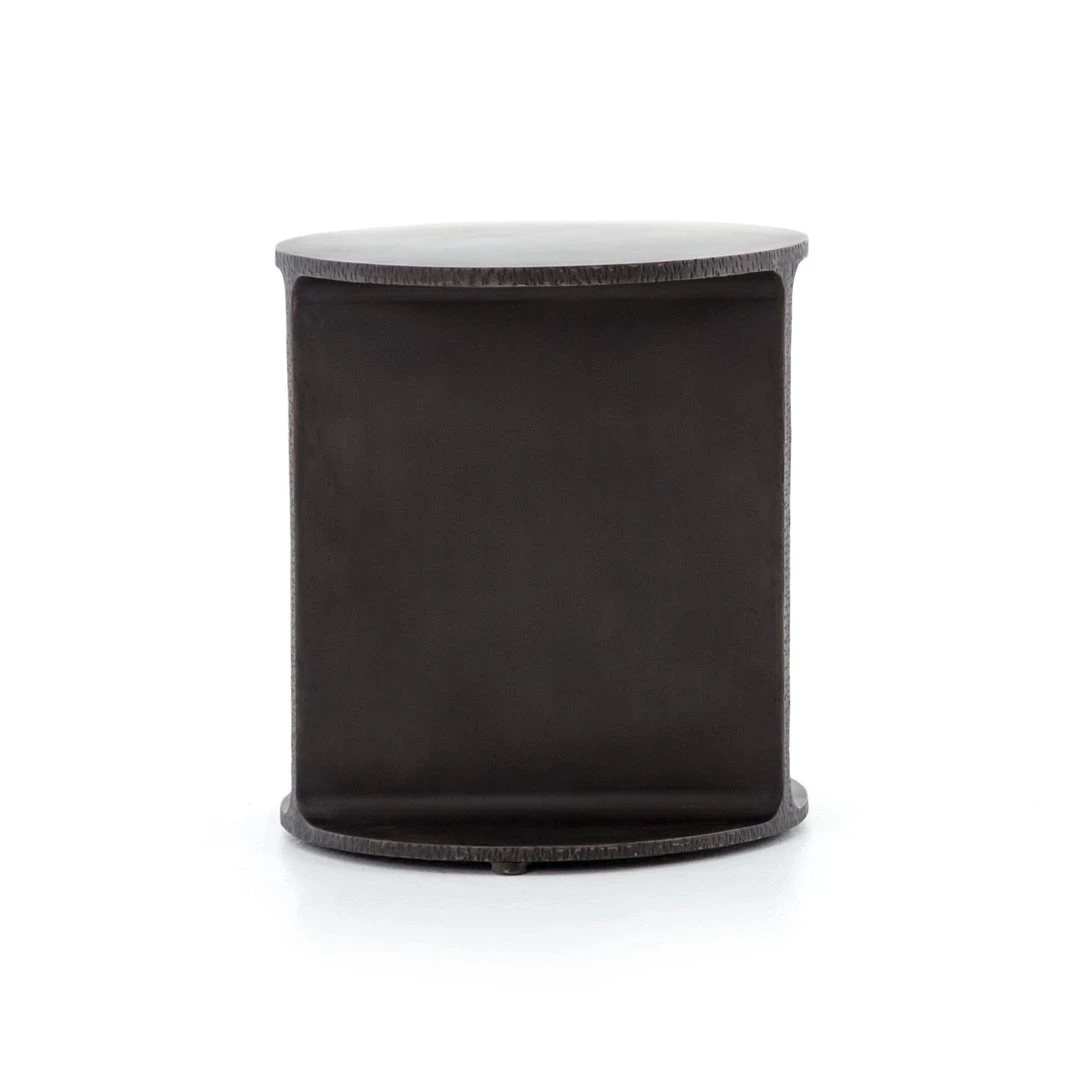 Edge from every angle. Flat stock iron is finished in a rustic fossil tone for a natural take on industrial-minimalist design, both smooth and textural at the same time.