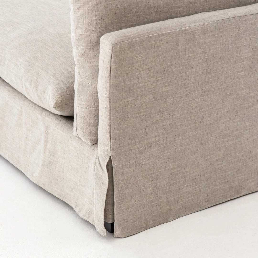 Chaise-style lounging, made for modern living. Neutral-toned upholstery covers shelter arms and oversize pillow-inspired cushion.