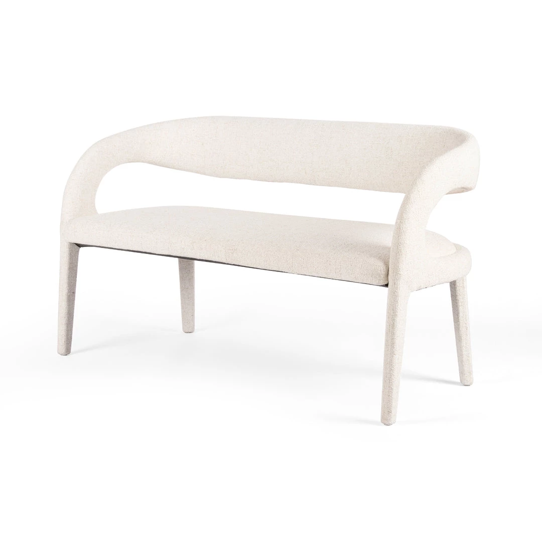 Strike a pose. Well curved and finely sculpted, with off-white high-performance fabric for a shapely and sensible addition to the modern dining room.