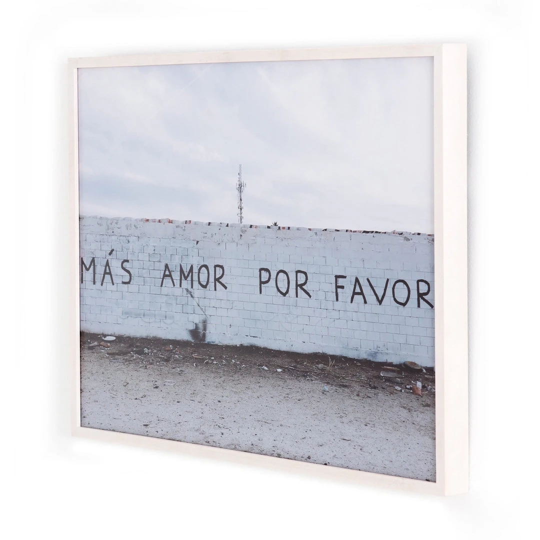 “More love, please” street art, photographed in Mexicali, Mexico then printed on top-quality photo paper with white-washed framing of American maple. Handmade in Austin, Texas.