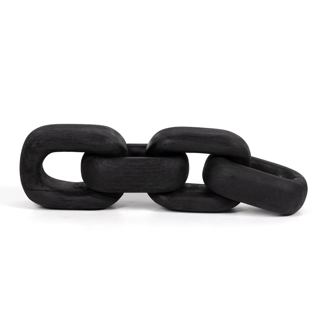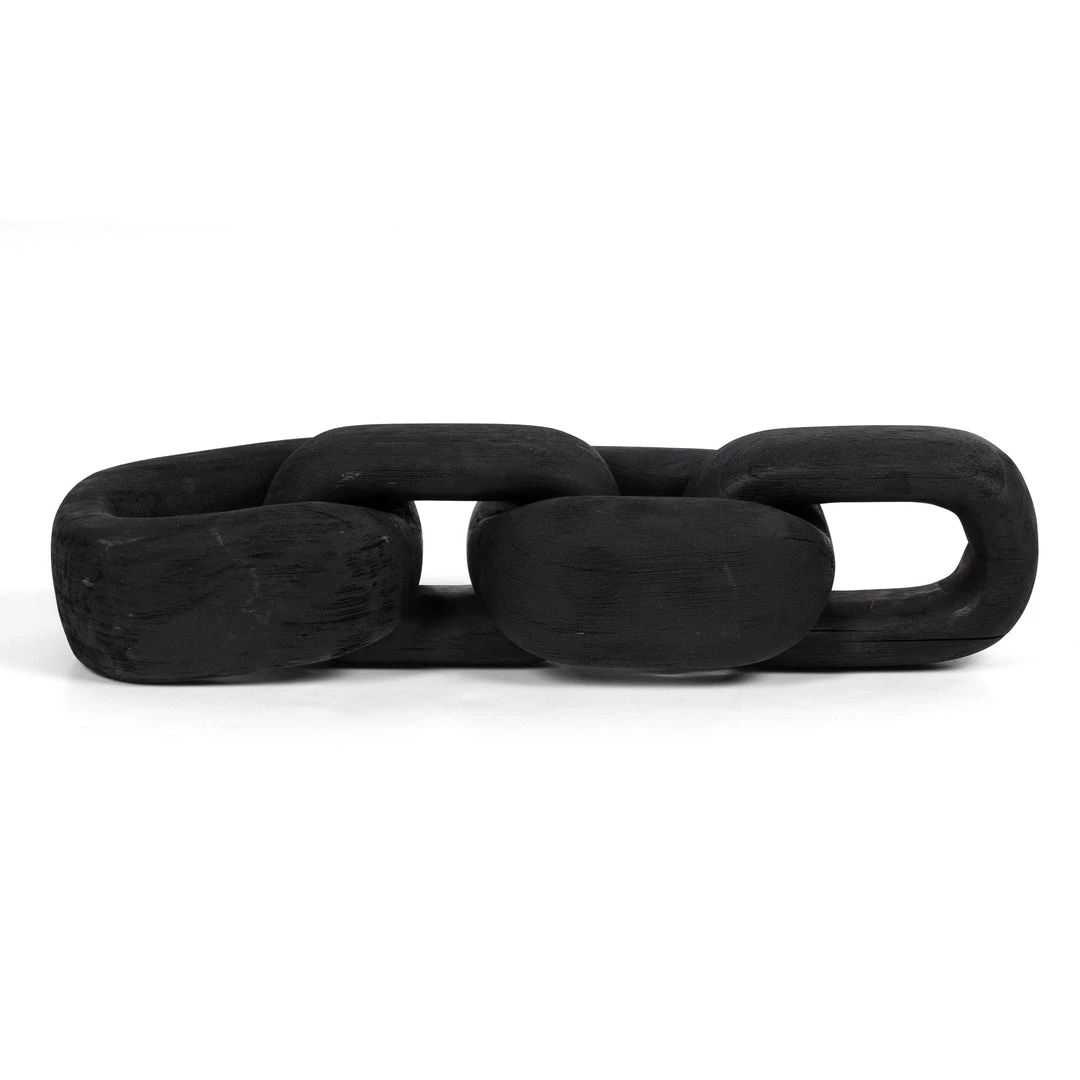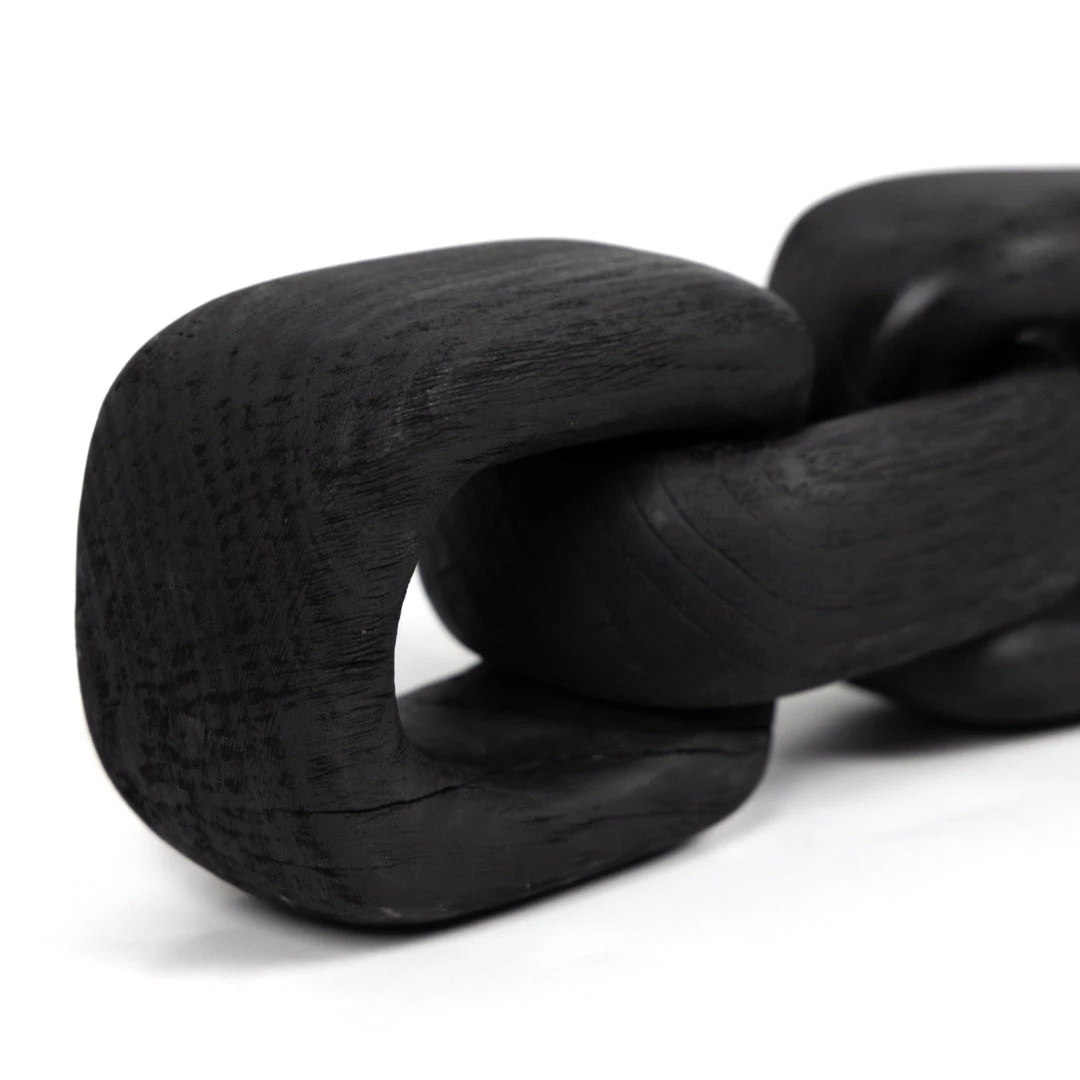 Chain reaction. Made from solid reclaimed woods and finished in a carbonized black, a decorative chain is handmade for a storied look and feel. Style just about anywhere for an organic finishing touch.