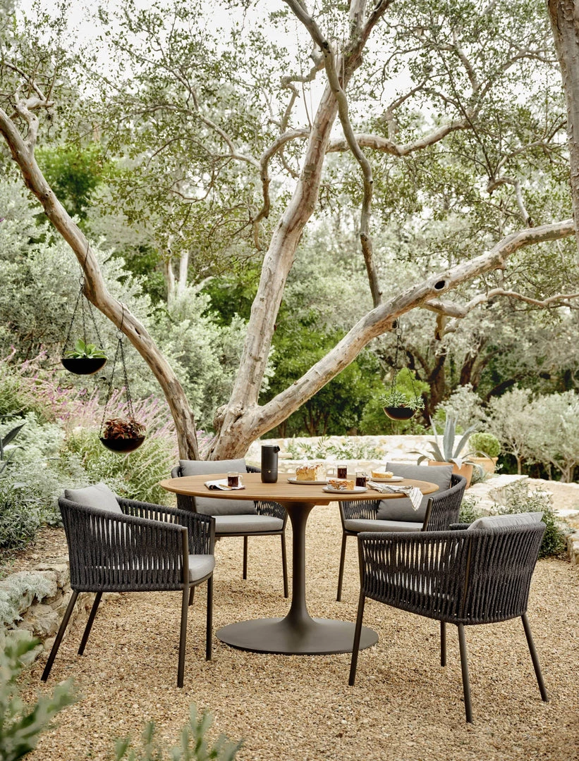 From the Solano Collection Trend-forward appeal, indoors or out. UV-resistant and water-repellant fabric delivers stylish durability to outdoor-friendly teak, metal and rope-based designs. Clean lines, X frames and palatable neutral tones boost the versatility of living and dining styles, with a mix of natural and FSC®-certified materials standing front and center.