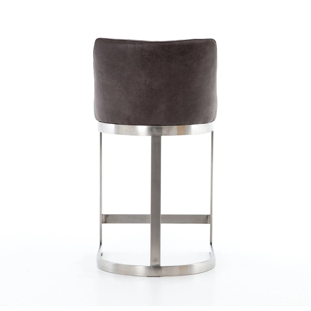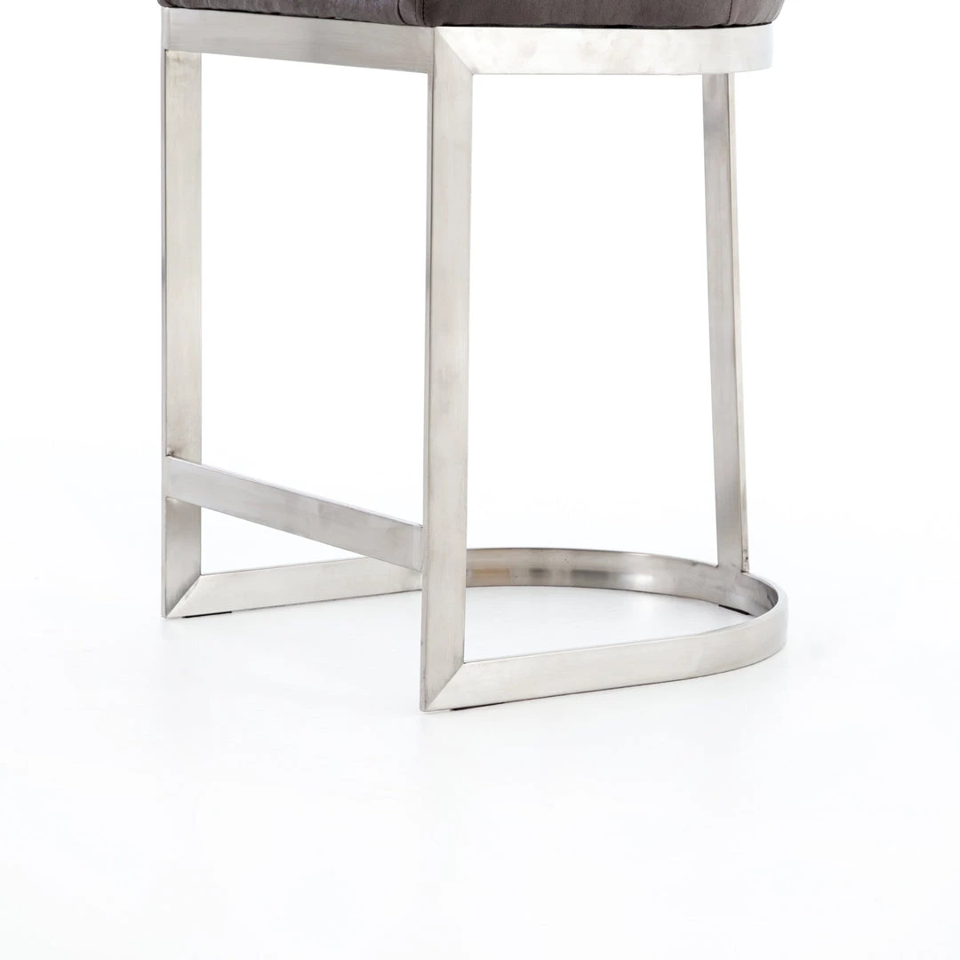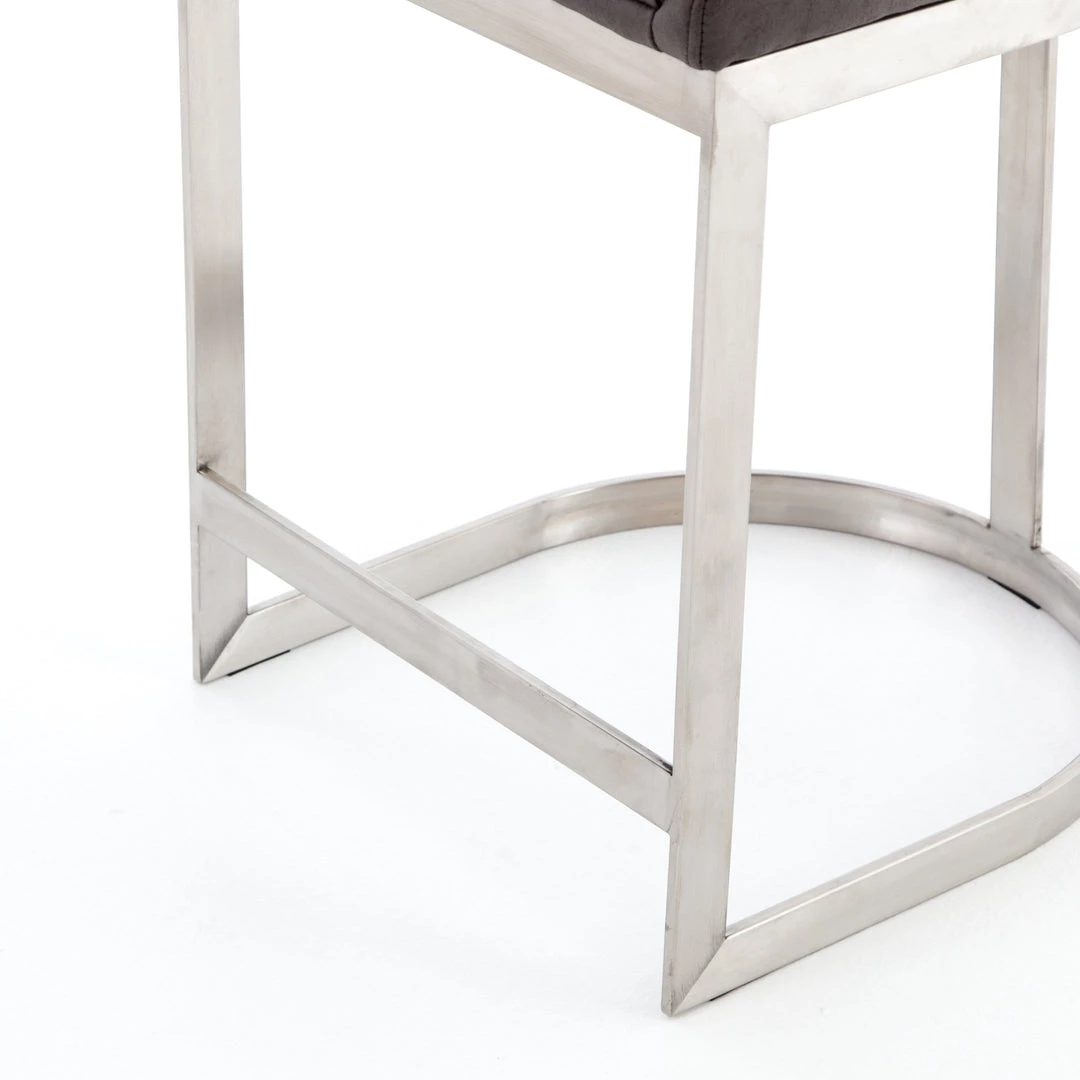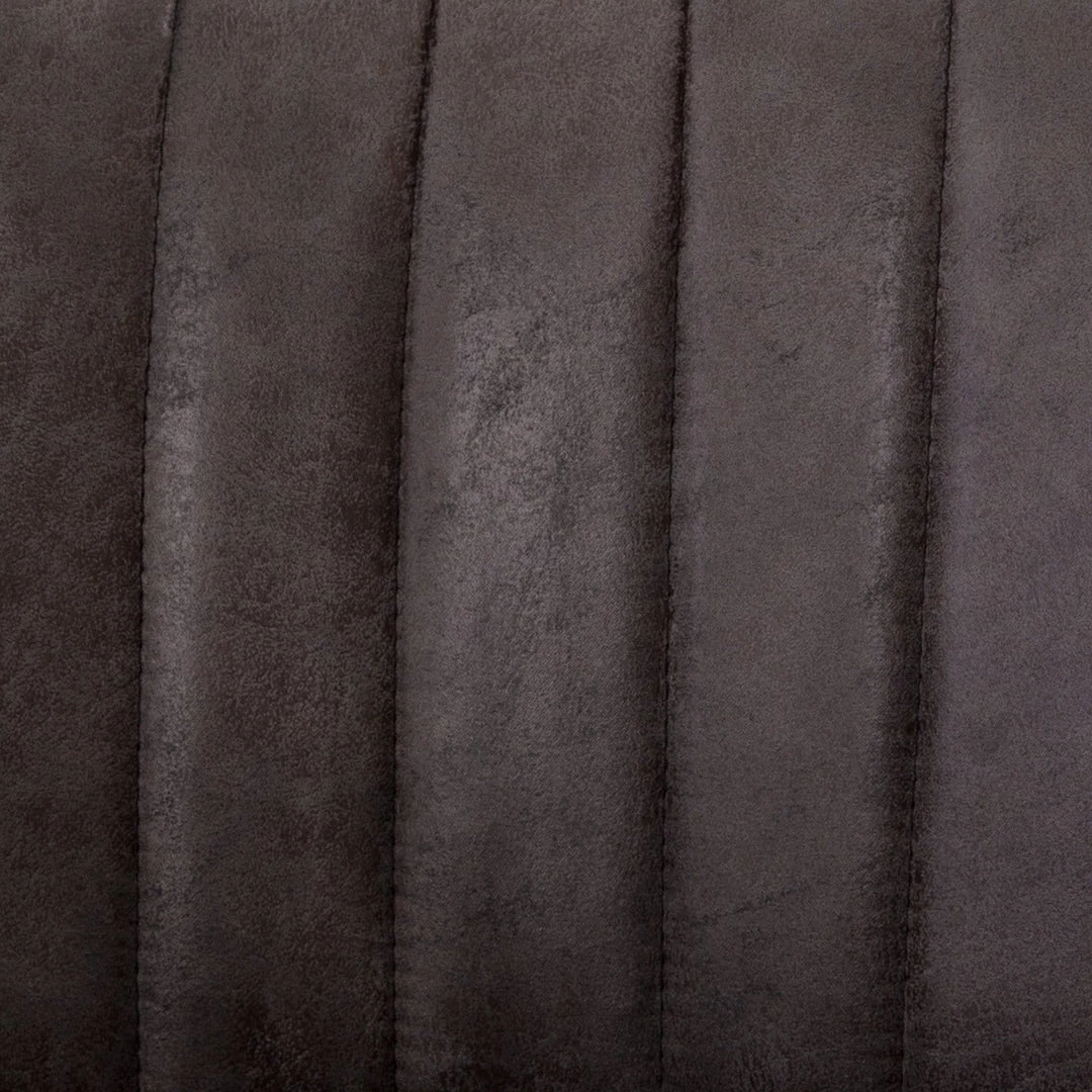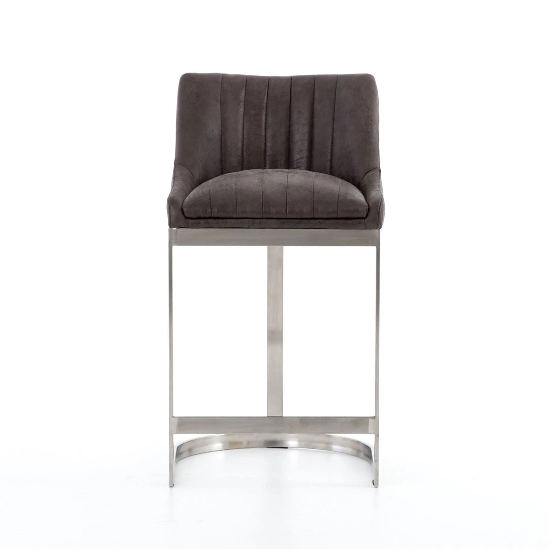 Vintage glamour gains modern presence. Stainless steel legs shape a classic U base. Rich faux leather adopts a graphite tone to welcome dramatic vertical channel tufting — the perfect pairing of throwback lounge style and fresh sophistication. Great in pairs or multiples.
