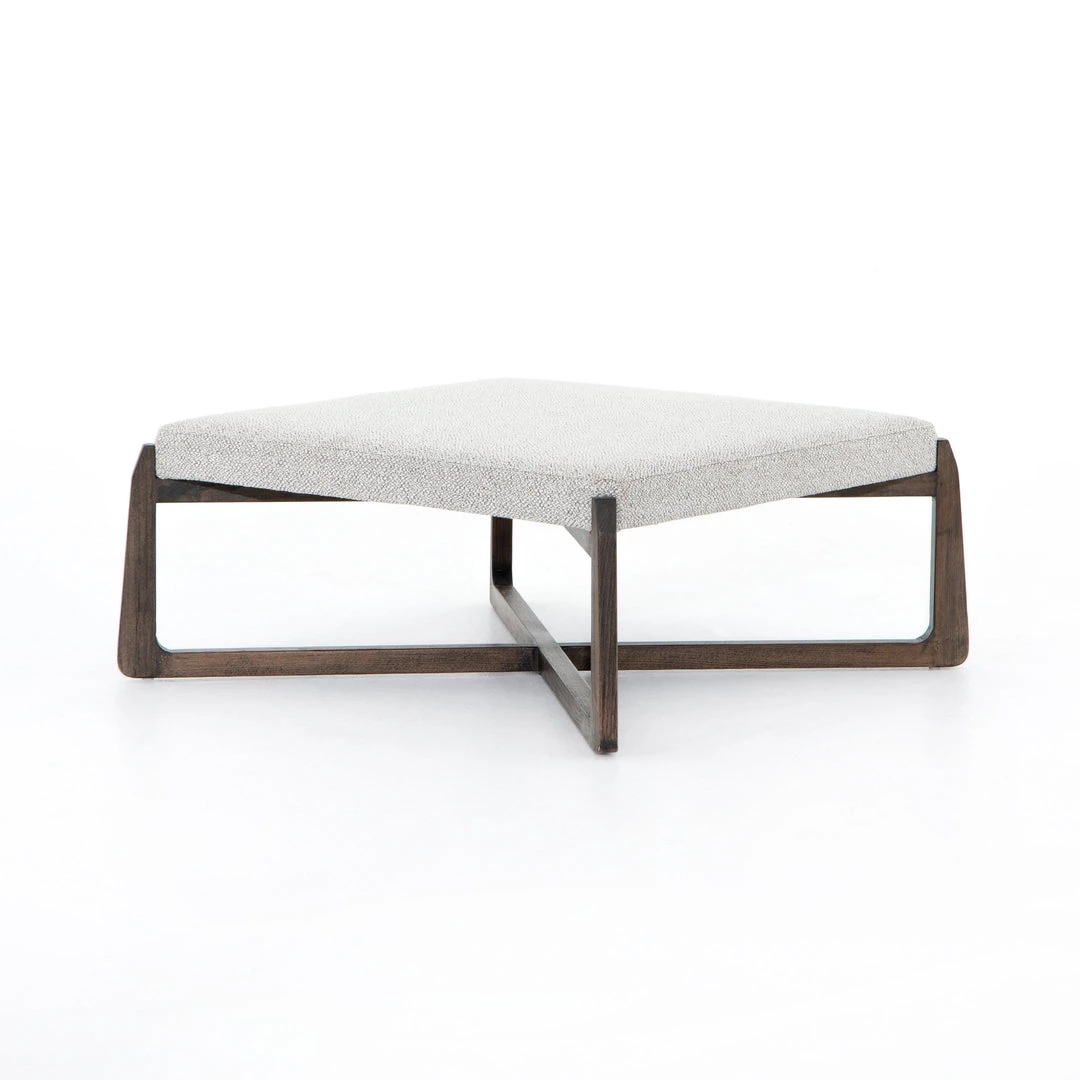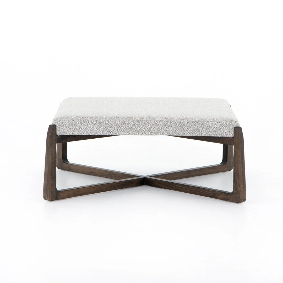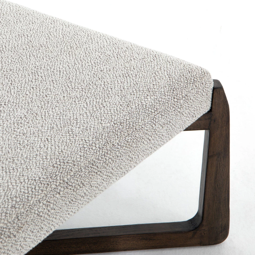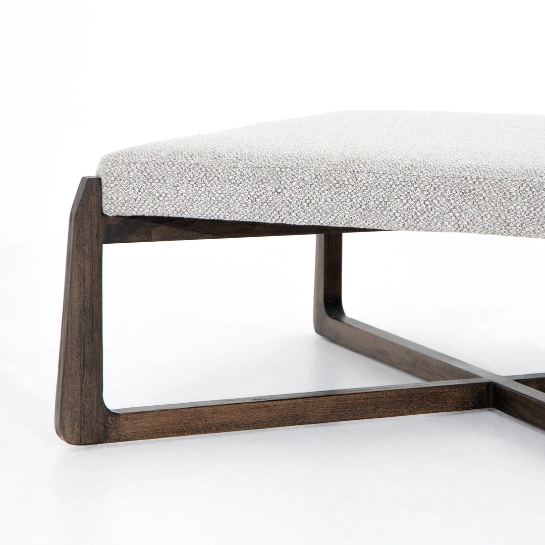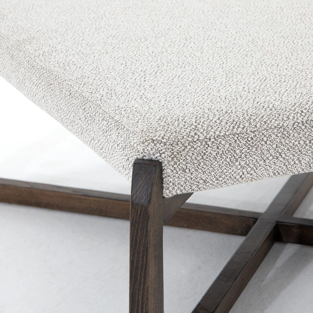 Ideal in the entryway or foot of the bed, an airy, cross-base beechwood frame supports textural bench-style seating, upholstered in a performance-grade fabric exclusive to Four Hands.